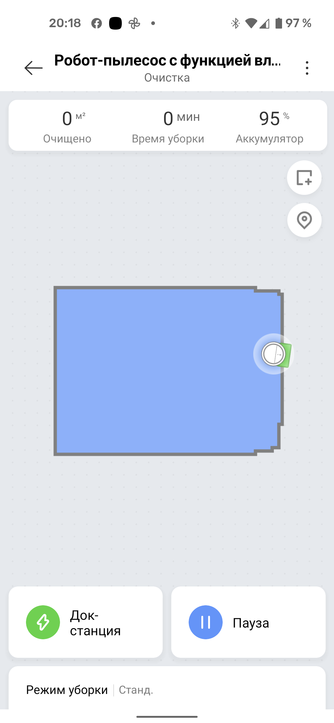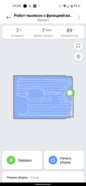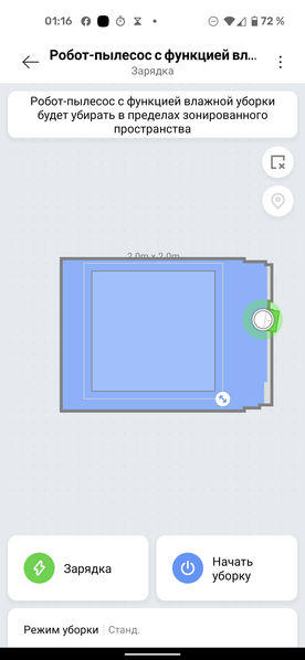 Нарисовав прямоугольную область в середине тестового помещения, мы включили пылесос.