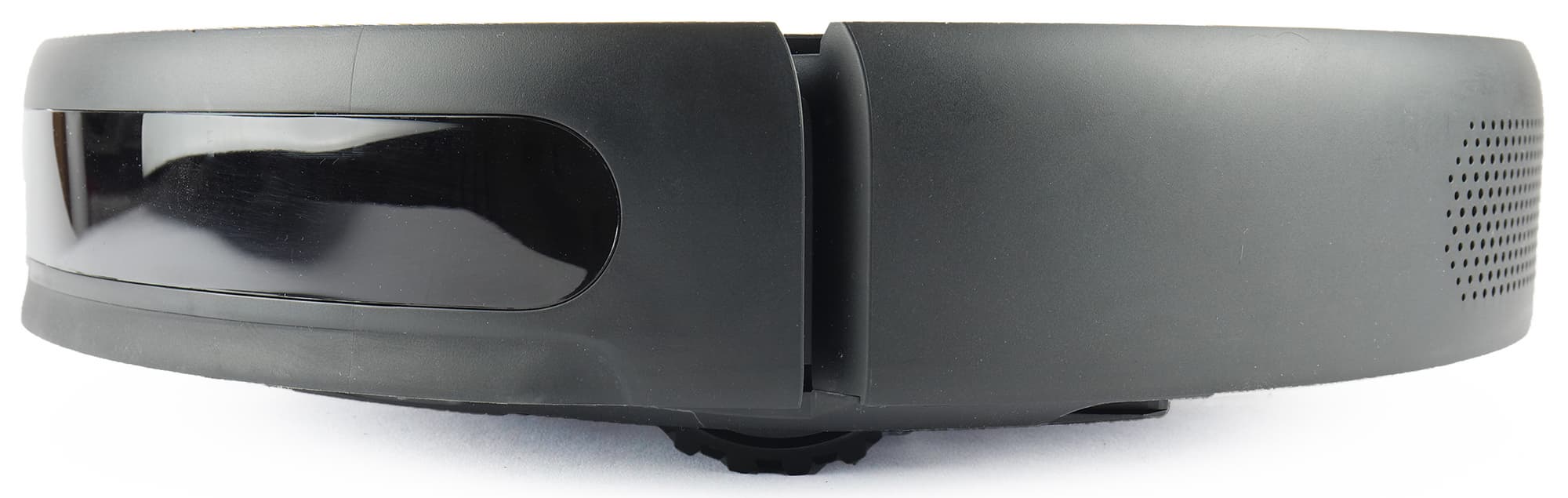 Как и у большинства приборов этого типа, подвижный бампер занимает половину окружности робота и снабжен не только оптическими, но и механическими датчиками, срабатывающими при наезде на препятствие. Отверстия для выхода воздуха находятся в задней части.