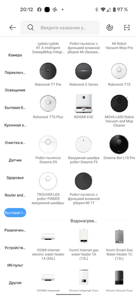 Чтобы подключить наш пылесос, необходимо выбрать соответствующую модель из обширного списка устройств Xiaomi (раздел «Бытовая техника»). Но на этом этапе мы столкнулись с затруднением: Mijia 1T в списке не оказалось, а автоматический поиск устройства завершился неудачей.