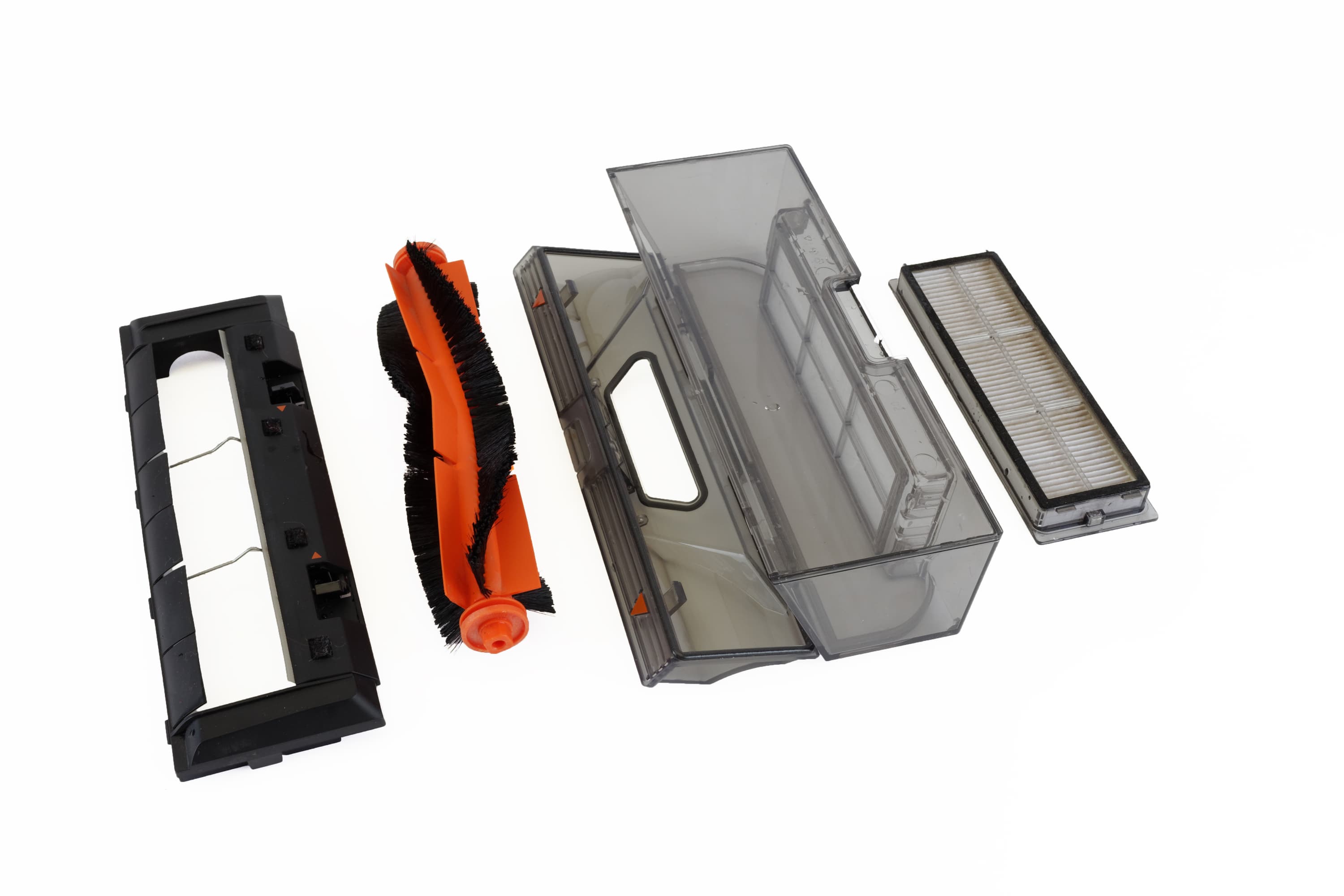 Система фильтрации у Xiaomi Mijia Sweeping Robot 1T несложна: роль предварительного фильтра исполняет мелкая капроновая сетка на выходе из мусороприемника, а для тонкой очистки в контейнере установлен прямоугольный HEPA-элемент с резиновыми уплотнителями по периметру.