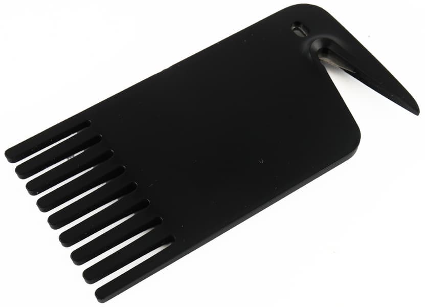 В коробке мы обнаружили и приспособление с гребенкой для чистки HEPA-фильтра и лезвием для срезания со щеток намотавшихся ниток и длинных волос.