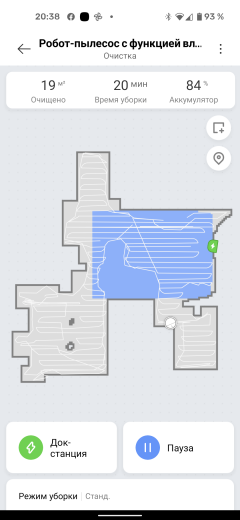 Во время второй уборки пылесос почти в точности повторил собственный маршрут, обойдя помещение за 8 минут 24 секунды и увеличив количество собранного мусора до 95,5%.