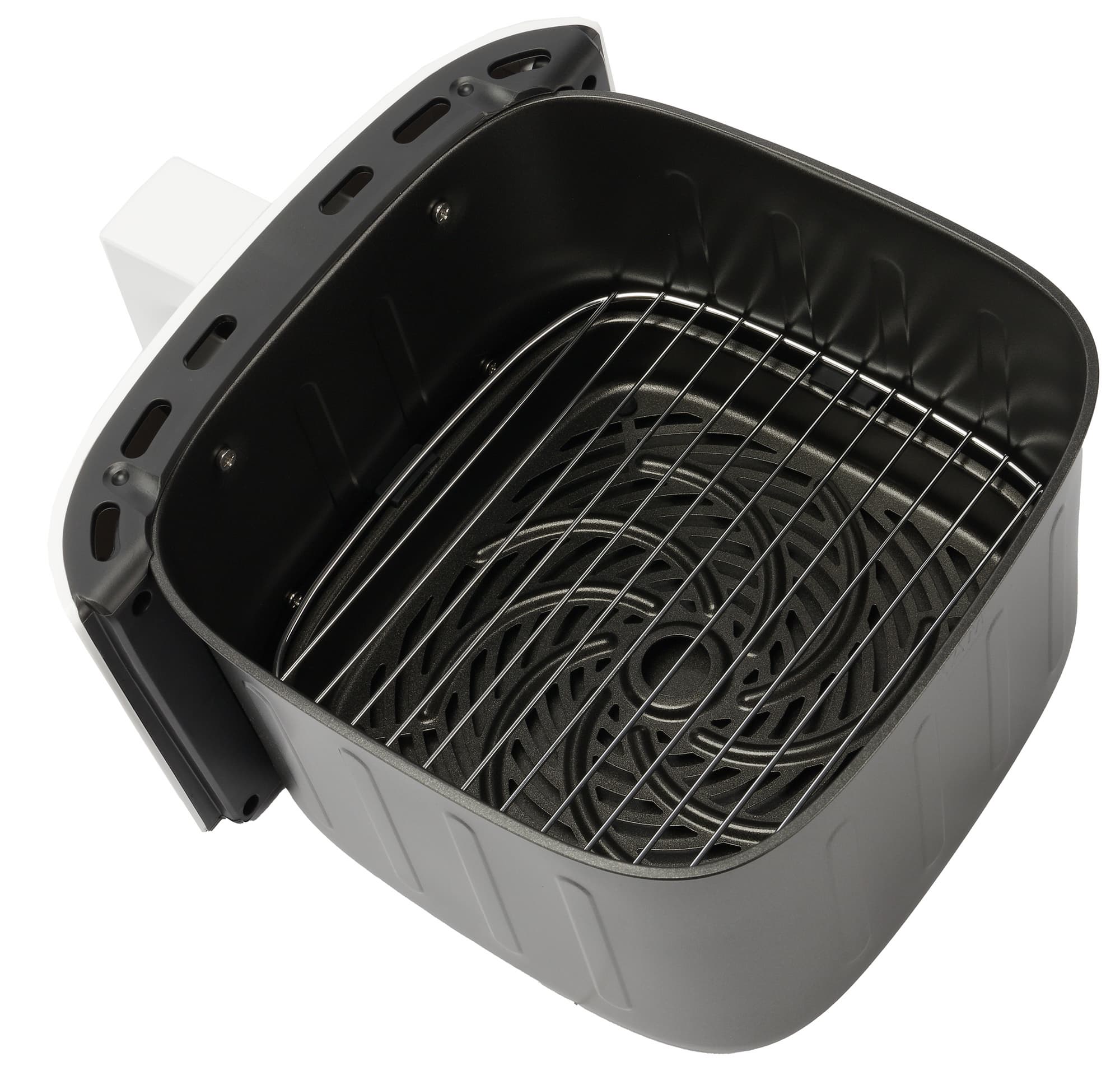 Металлические части чаши и решетка снабжены антипригарным покрытием. Смотровым окном корзина не оборудована.