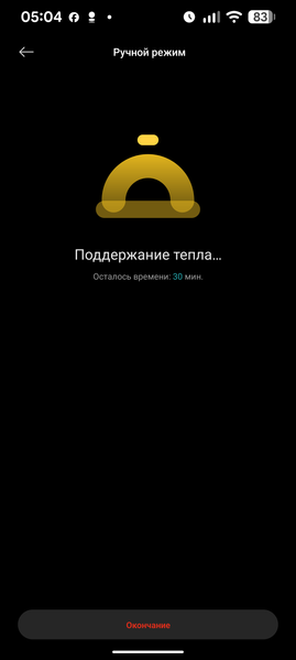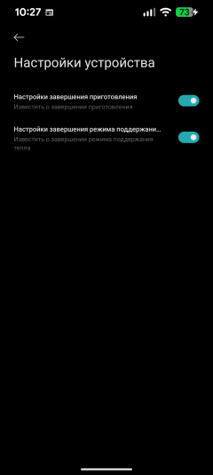 После завершения основного цикла и режима подогрева приложение присылает пользователю пуш-уведомление.