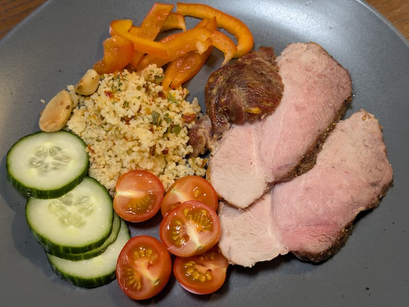 Этот этап продлился еще 12 минут. Когда температура внутри куска повысилась до 80 °C, мы остановили приготовление, дали мясу отдохнуть минут десять и подали к столу.
