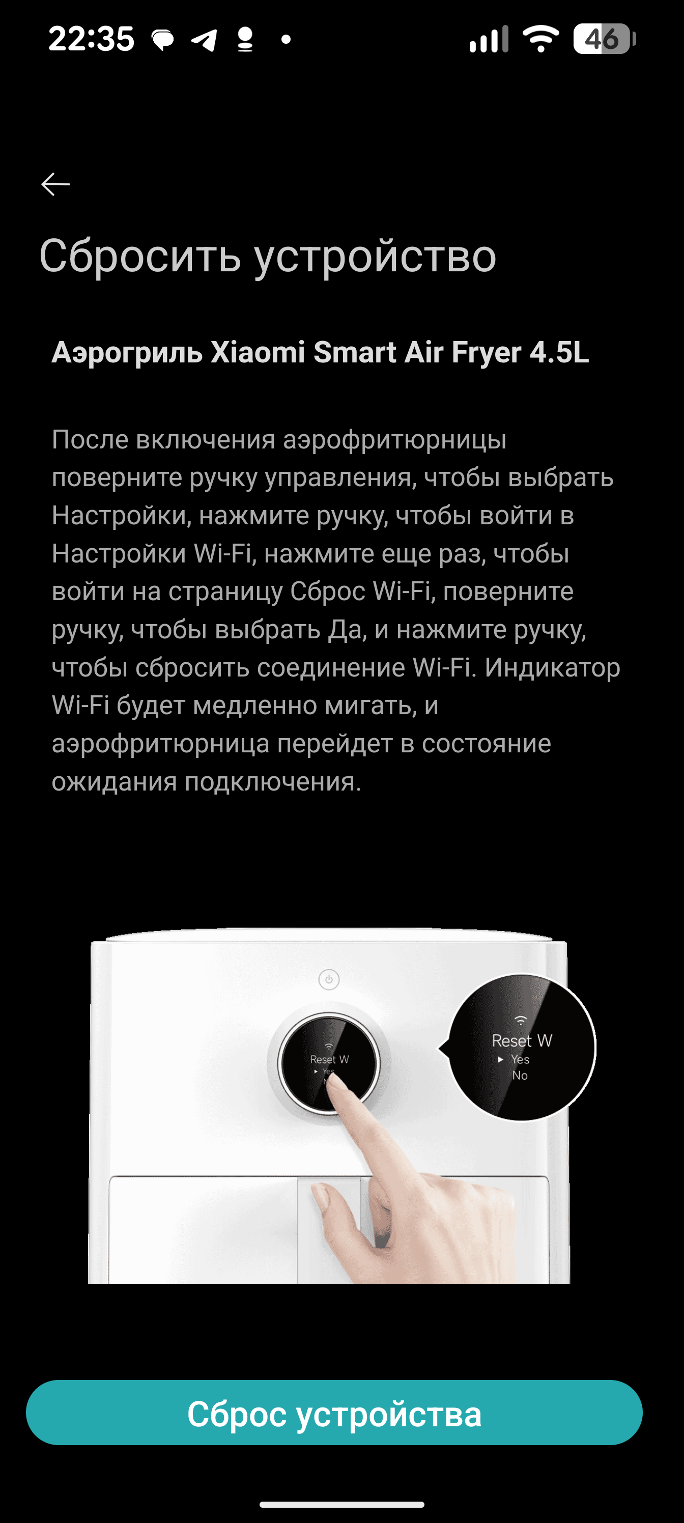 Весьма желательно при настройке активировать беспроводной интерфейс и подключить аэрогриль к мобильному приложению — это расширит возможности устройства.