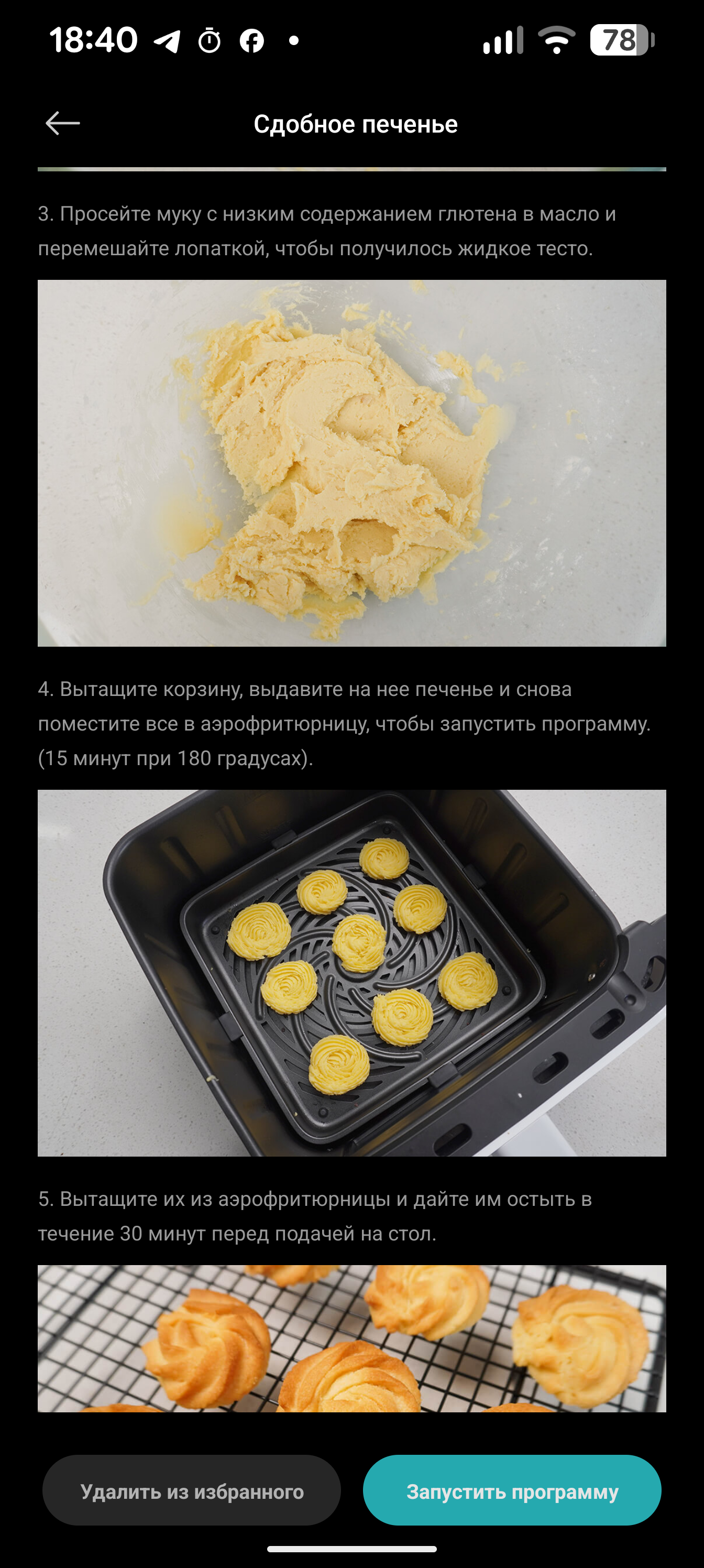 Разложив будущее печенье на решетке, мы запустили программу из приложения и подождали положенное время (15 минут на 180 °C).