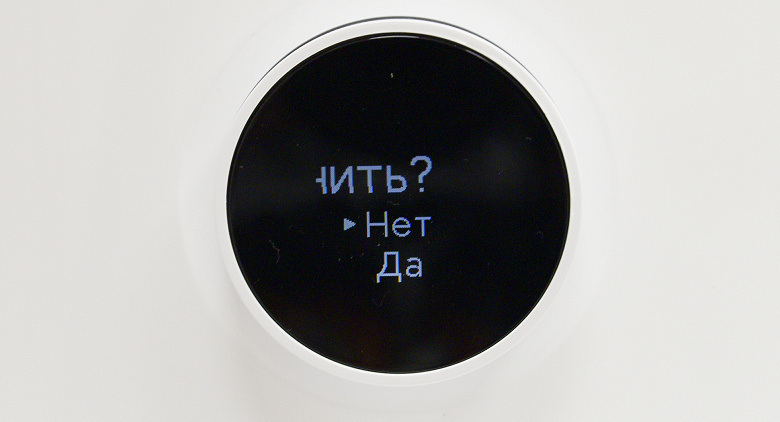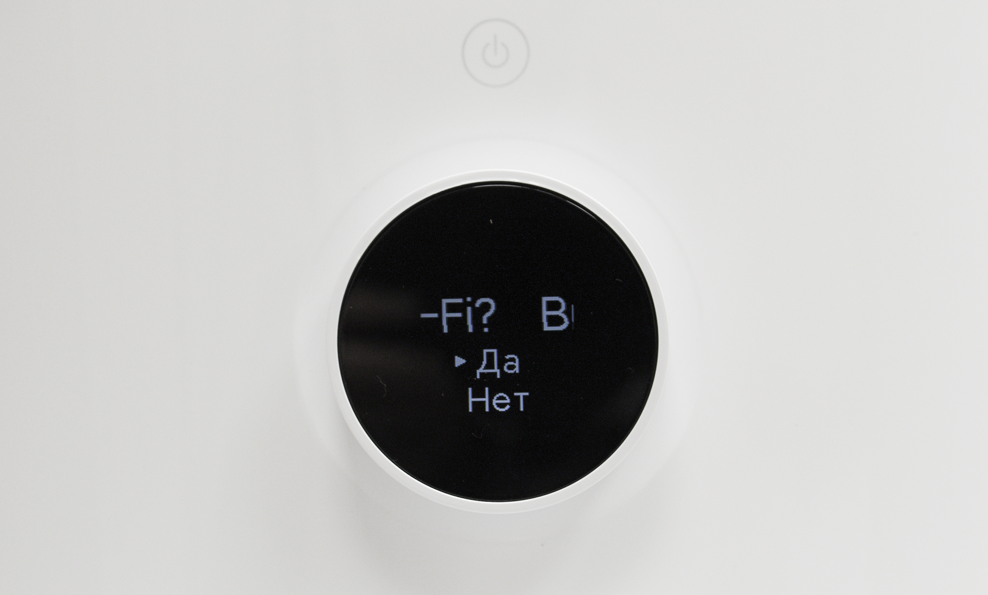 Чтобы вывести аэрогриль из режима сна, следует прикоснуться к сенсорной кнопке в верхней части передней панели. «Проснувшееся» устройство включает на ручке управления круглый монохромный TFT-дисплей и ждет указаний.