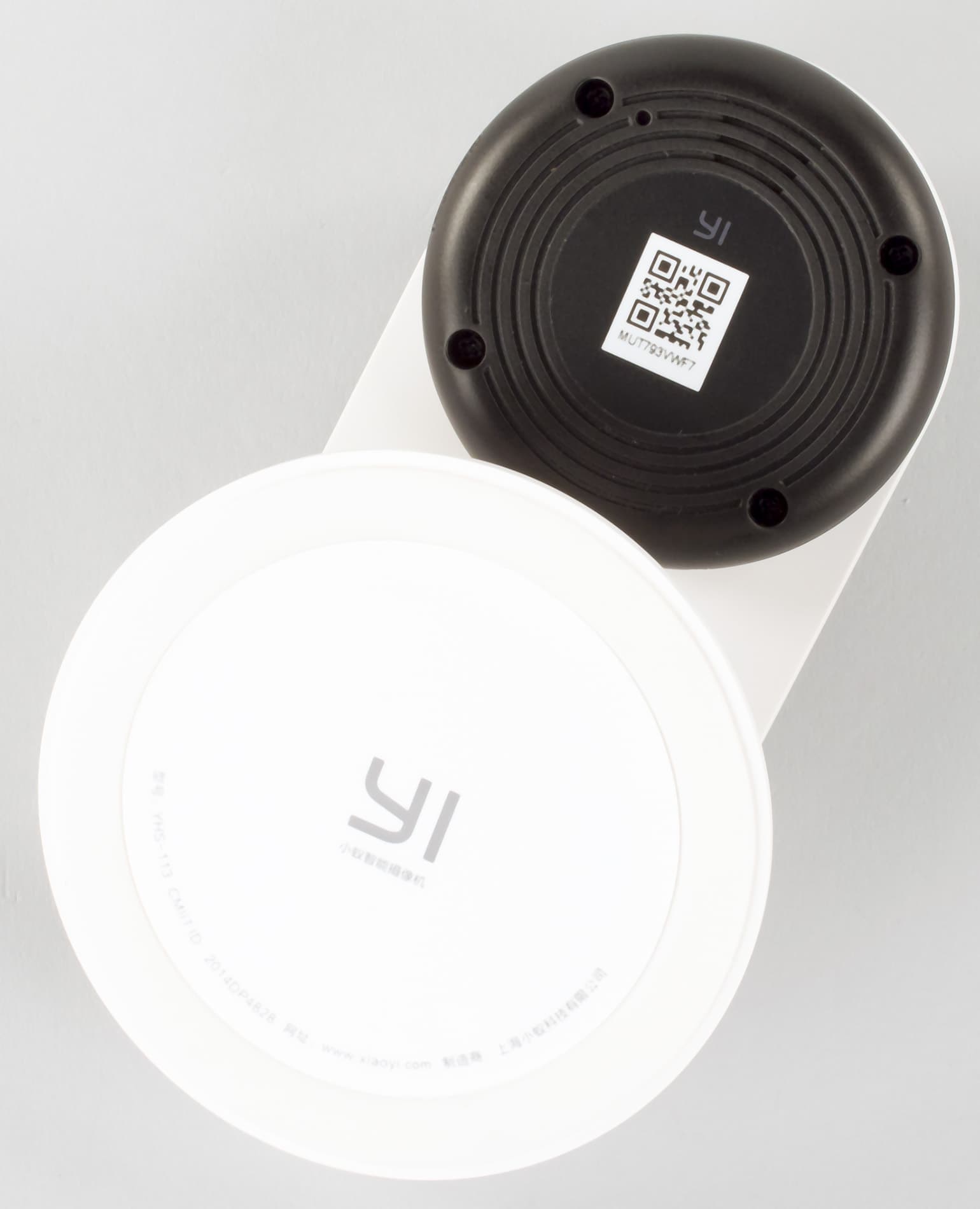 Камера поставляется в сравнимой по формату с упаковкой бюджетного смартфона картонной коробке. Из опознавательных знаков на ней можно заметить только логотип YI. На дне коробки находится наклейка с основными параметрами устройства. Большинство информации здесь приводится на китайском языке, но что-то разобрать можно.