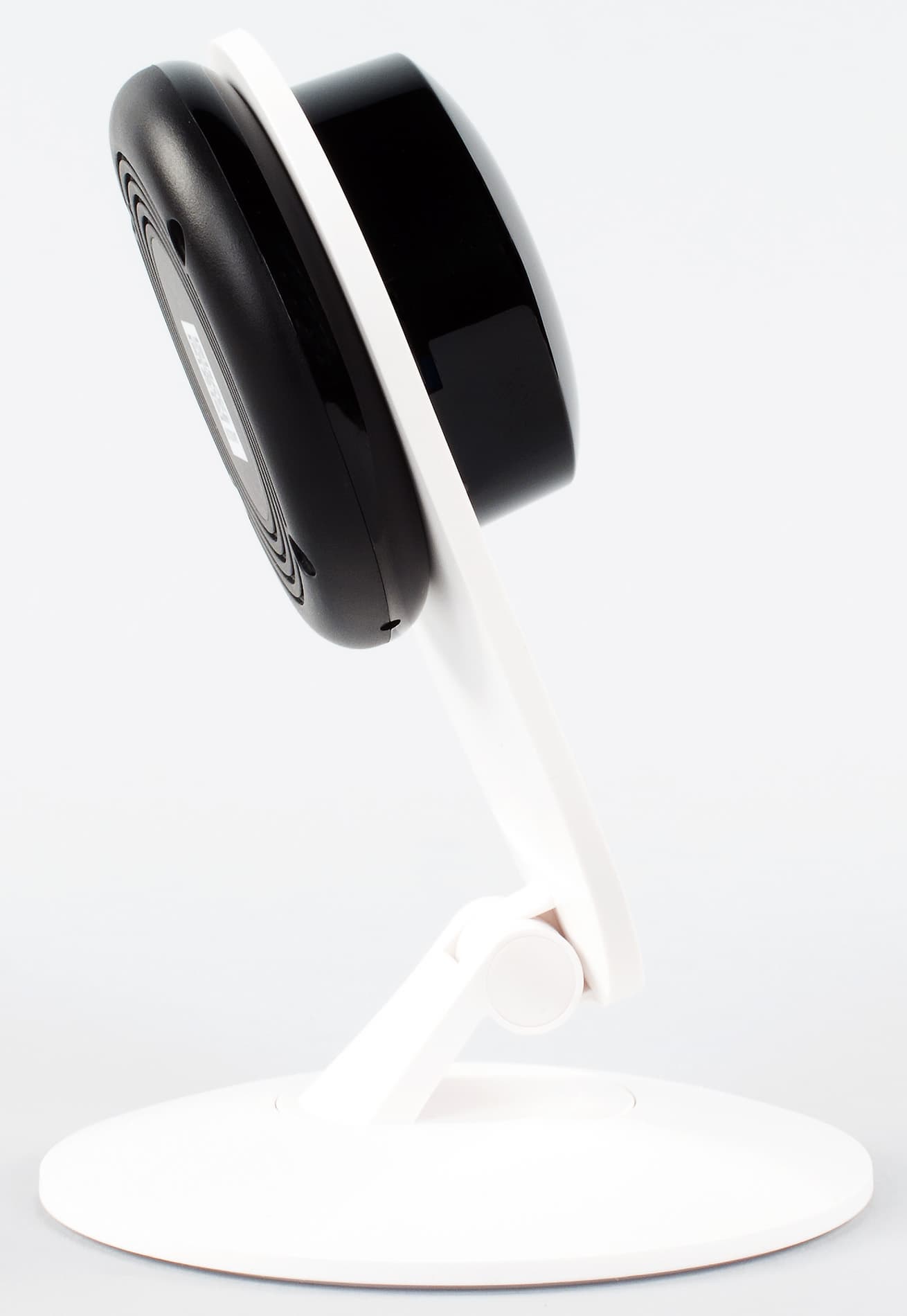 Конструктивно устройство состоит из двух независимых частей — блока камеры и подставки. Второй элемент выполнен из крепкого матового белого пластика и имеет одну степень свободы.