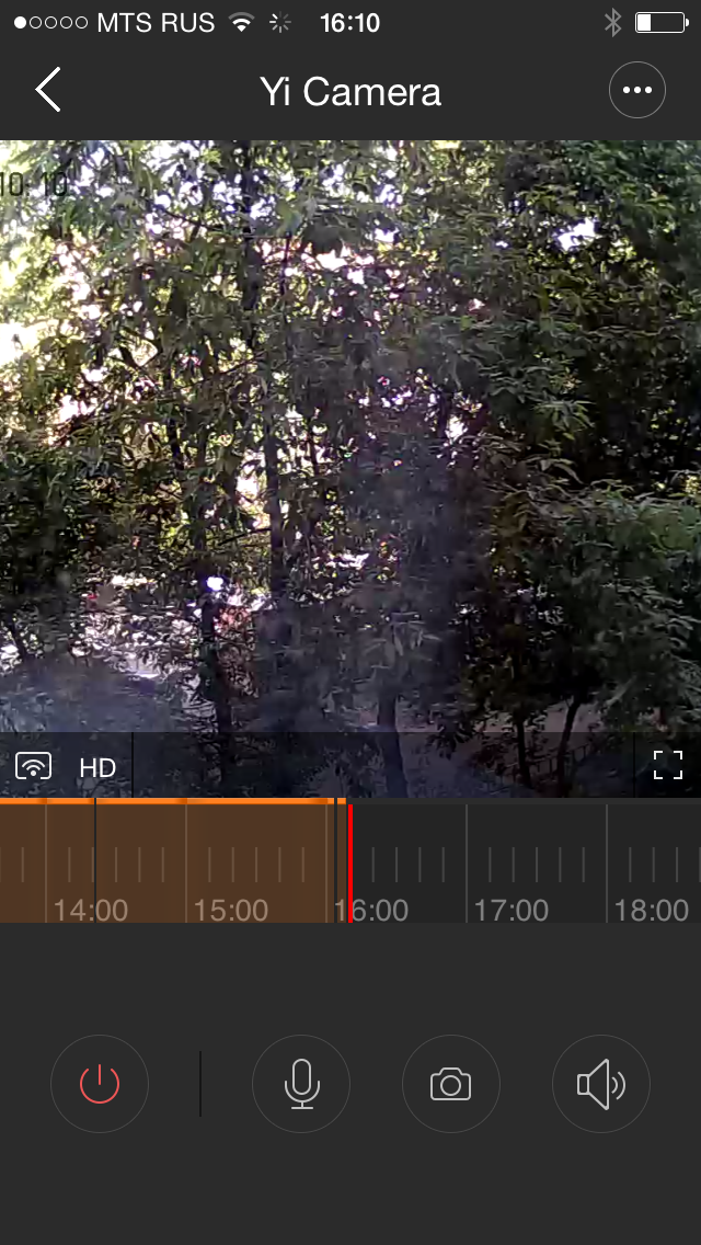 Основное пространство в интерфейсе работы с камерой в портретной ориентации экрана занимает окно с изображением, а котором из-за разницы форматов можно использовать панорамирование, в том числе и поворотом смартфона. Дополнительно можно увеличить картинку стандартным жестом двумя пальцами для рассмотрения деталей. Под ним есть пункт переключения качества трансляции (SD, HD или авто), значок для переключения в альбомный режим, таймлиния, на которой цветом выделяется время, когда велась запись и несколько кнопок: отключения записи и трансляции, включения микрофона, создания снимка (записывается на локальное устройство), включения трансляции звука. В версии для Android отключения трансляции звука с камеры нет, но есть возможность быстрой навигации по архиву записей при работе с роутером Xiaomi. В альбомном режиме изображение с камеры занимает весь экран, можно вызнать на него таймлинию и основные кнопки. Если у вас есть телевизор Xiaomi, можно вывести картинку с камеры на него.