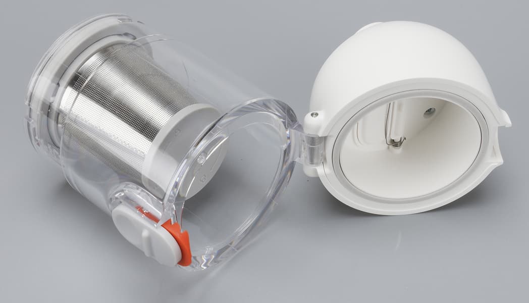 Сам пылесборник присоединяется к корпусу, так что его легко снять, повернув против часовой стрелки, и также несложно обратно зафиксировать поворотом по часовой стрелке.