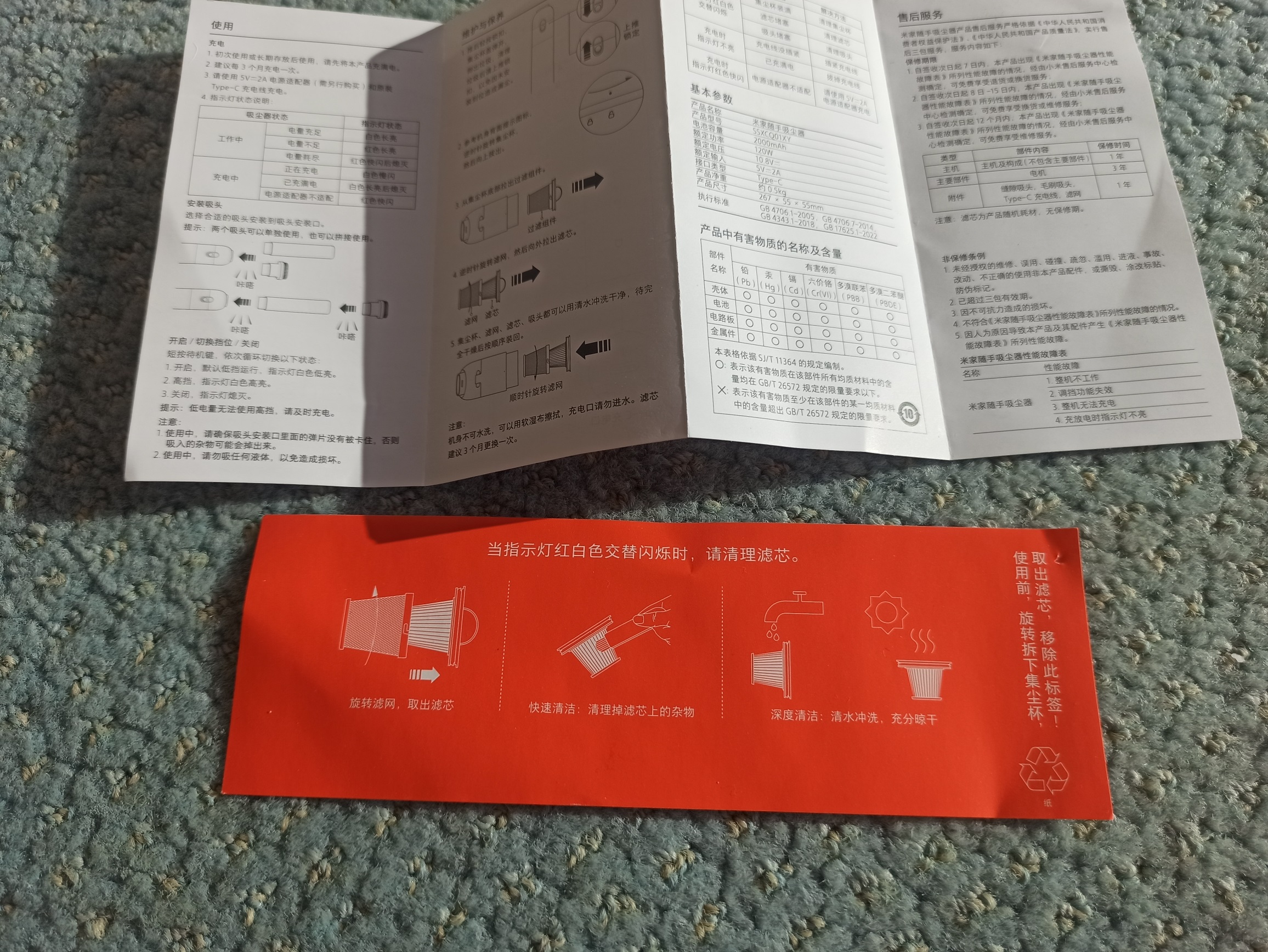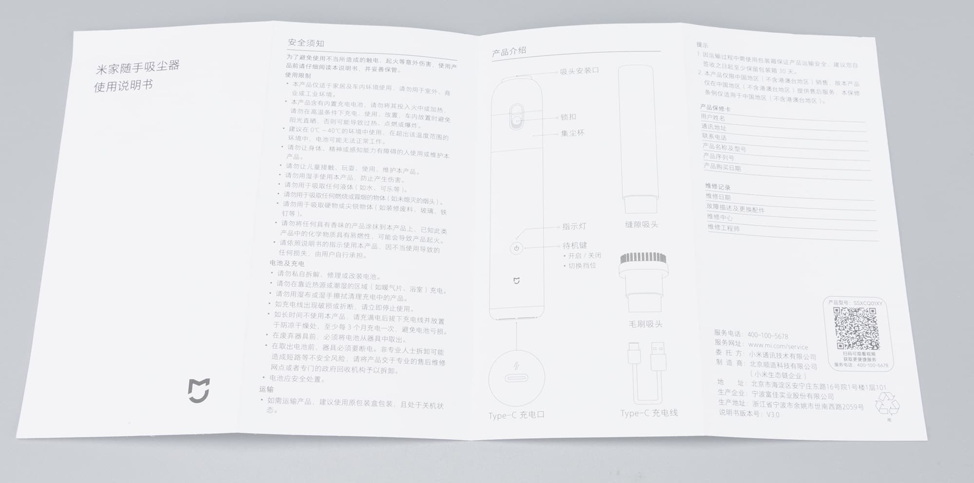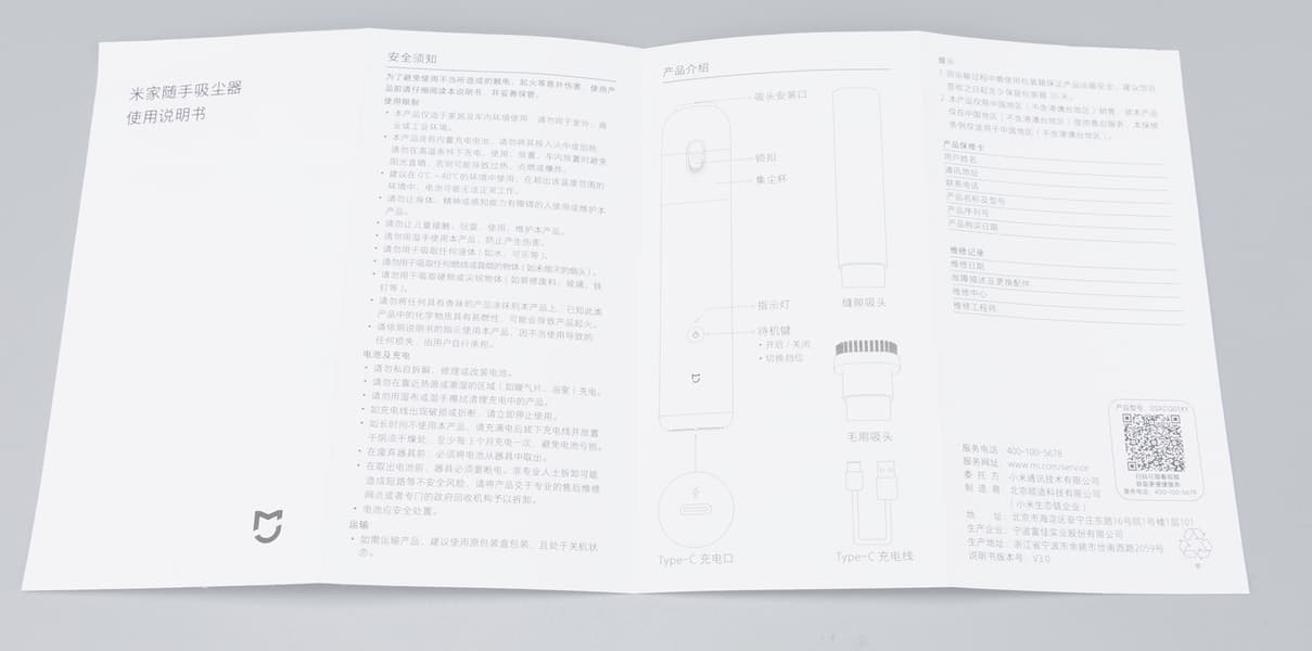 Руководство по эксплуатации к пылесосу также выполнено в духе Xiaomi и представляет собой миниатюрный буклет с базовой информацией на китайском языке.