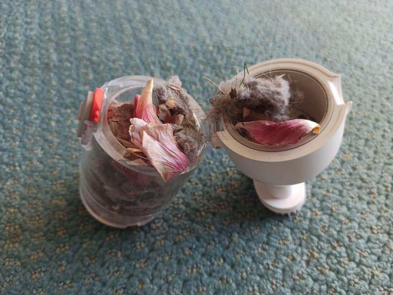 По окончании 30-минутного теста работы пылесоса в стандартном режиме мы обнаружили практически заполненным наш небольшой пылесборник.