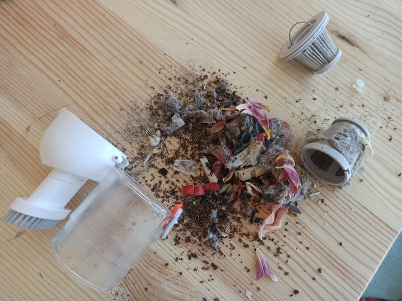 Мусор, который нас удалось собрать с помощью пылесоса был разнообразным: от очень мелкой пыли до довольно крупных фрагментов разного вида сора.