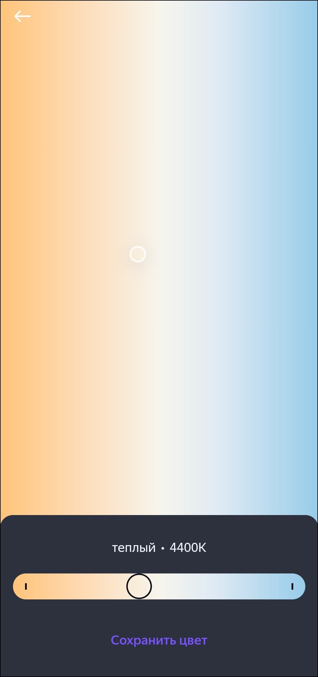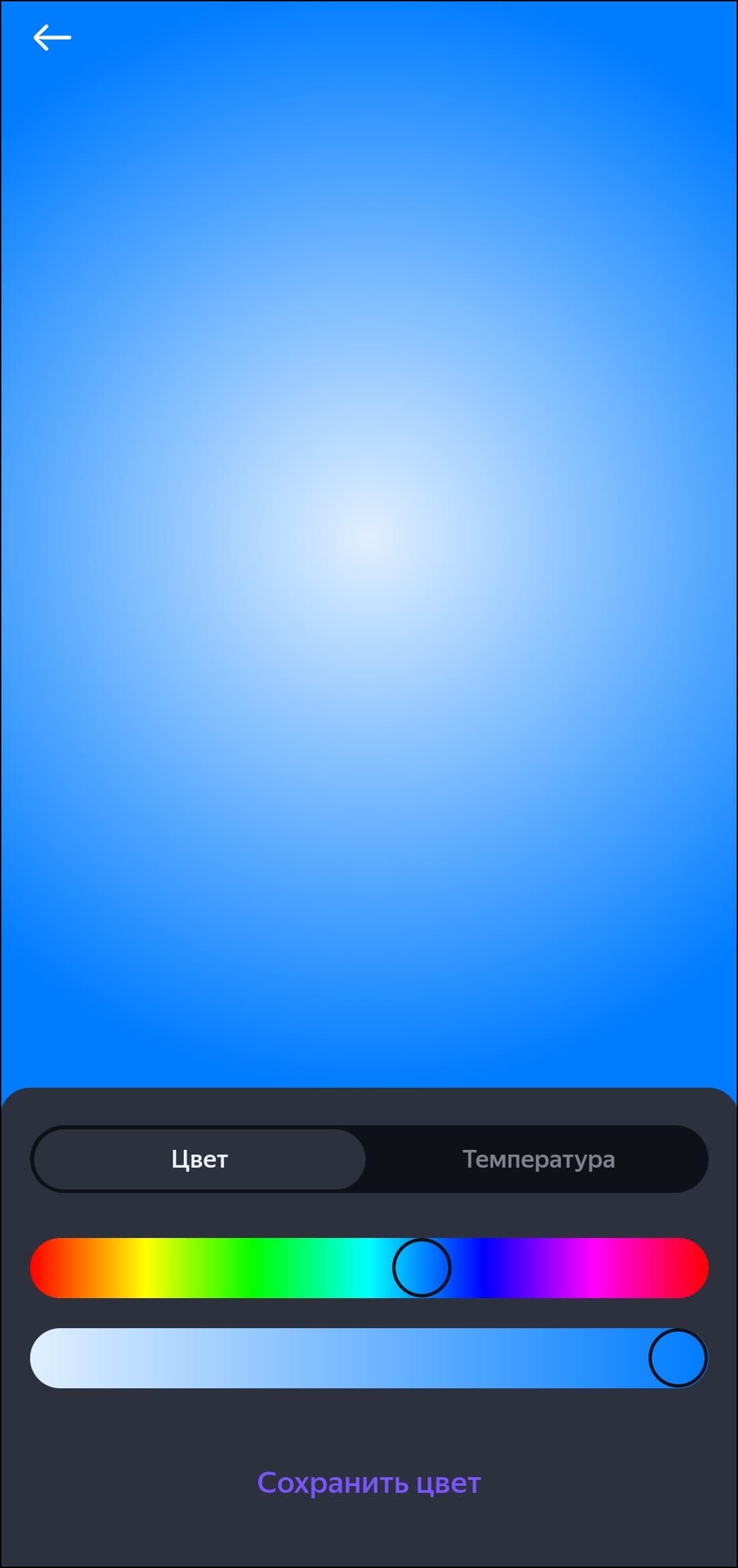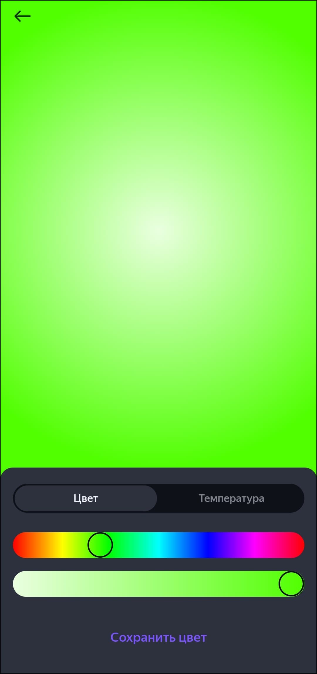 Список доступных опций стандартный для RGB-лампочек «Яндекса», всё на месте — от «режима чтения» до гибкой настройки цвета свечения.