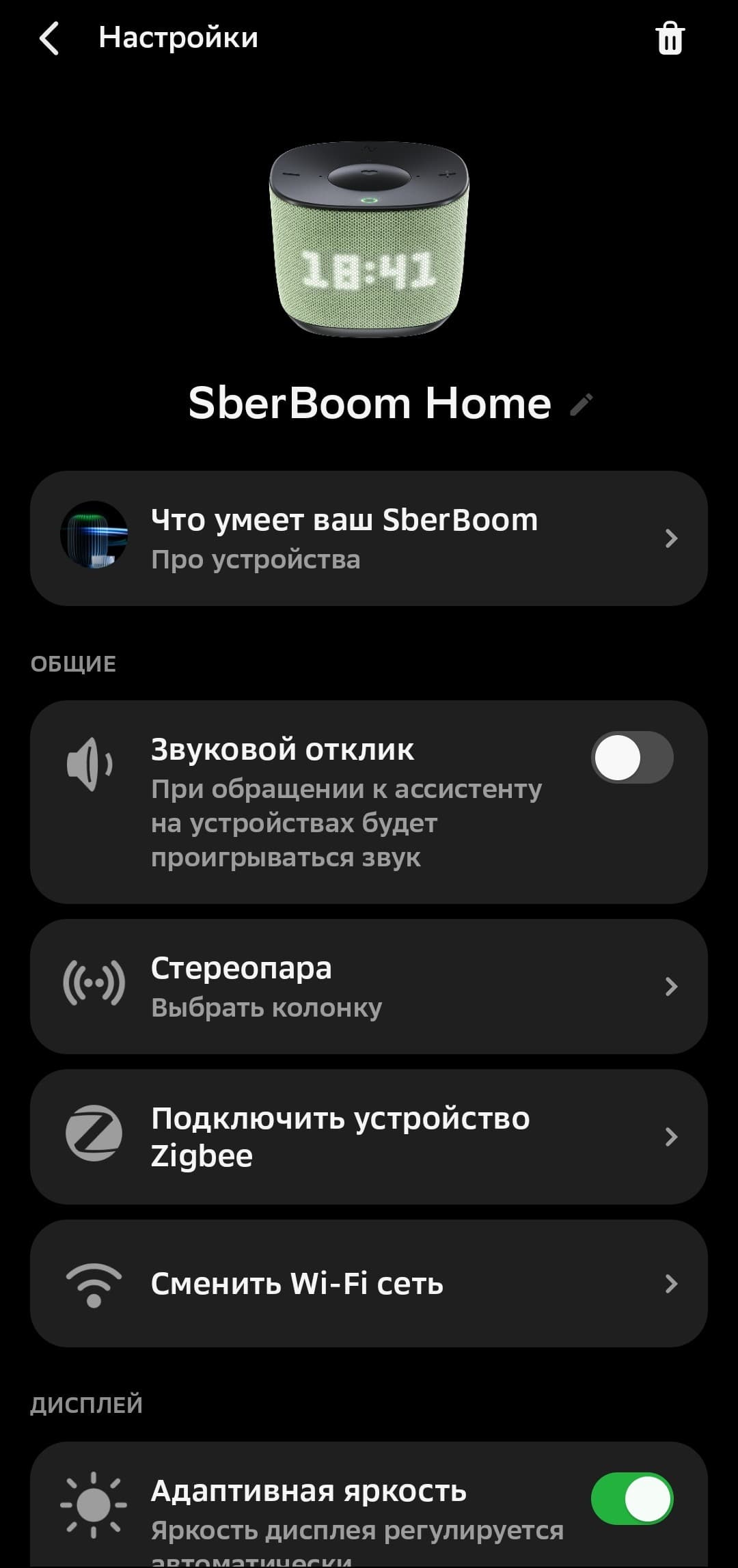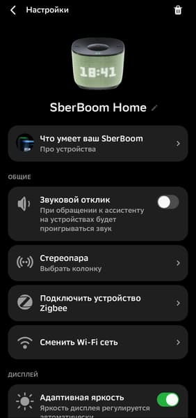 Ну и раз у нас тут «потенциально универсальный» Zigbee, очень любопытно было попробовать добавить выключатель в экосистему умного дома другого производителя. Под рукой оказалась оснащенная Zigbee-хабом SberBoom Home, ею мы и воспользовались. К сожалению, ничего не получилось — после нескольких попыток выключатель так и не был даже обнаружен.