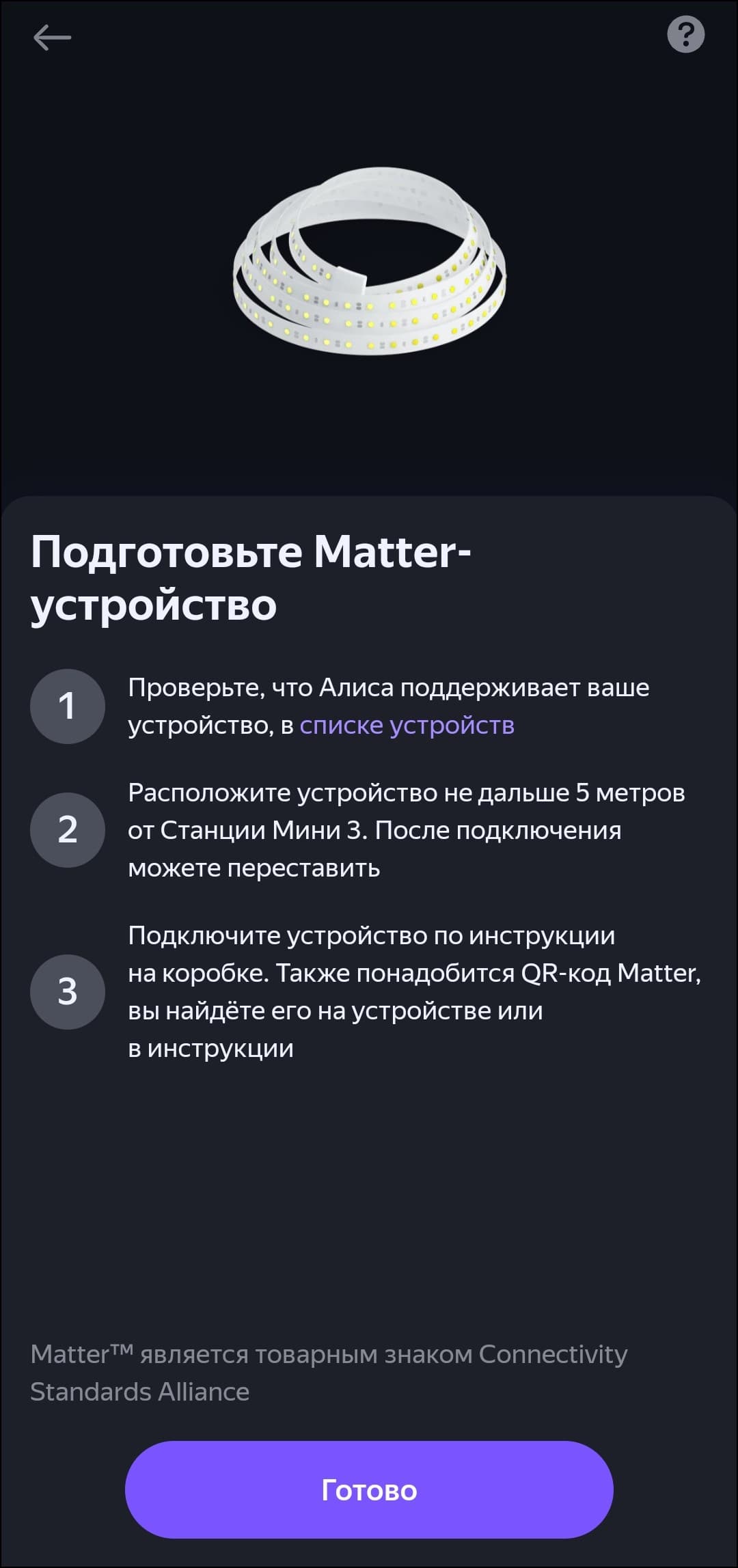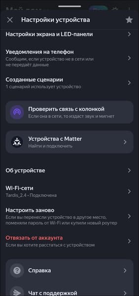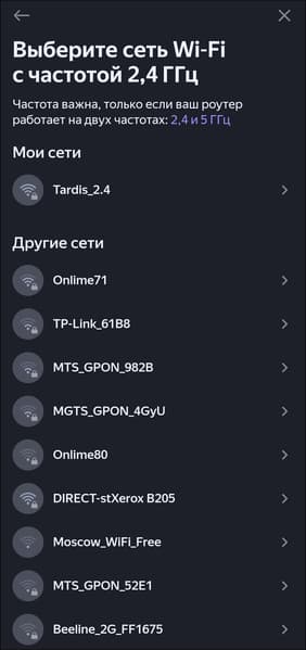 Если этого не произошло, открываем приложение, идем на страницу устройства с возможностью подключения Matter over Wi-Fi, в нашем случае — «Яндекс Станции Мини 3». Запускаем сопряжение, выбираем сеть Wi-Fi, если ранее она уже использовалась, пароль добавляется автоматически.