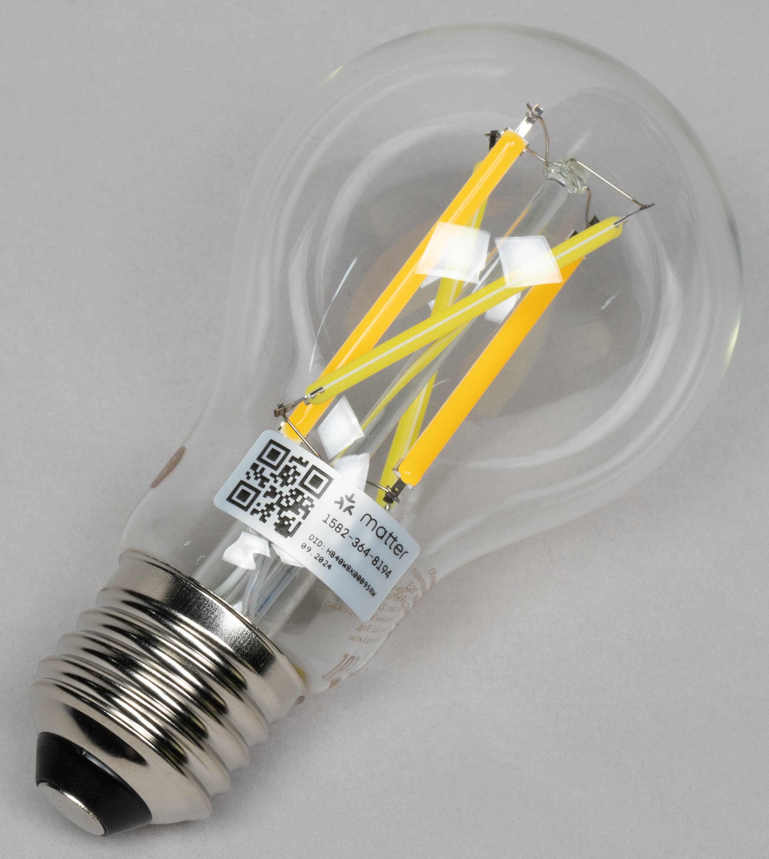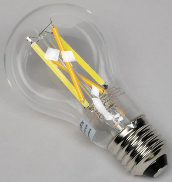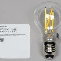 Колба у YNDX-00554 прозрачная, внутри видны нити-филаменты. По размеру они отличаются от рассмотренных выше моделей буквально на пару-тройку миллиметров, максимальный световой поток — на уровне базовых решений, то есть 806 лм.
