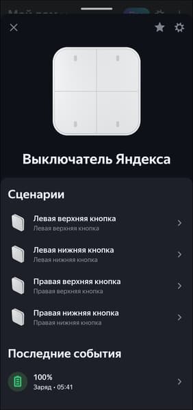 Беспроводные выключатели YNDX-00534 и YNDX-00535 по сути являются смарт-кнопками, поведение которых можно настраивать через приложение, создавая те или иные сценарии.