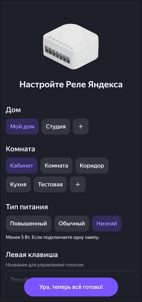 Бывает, что пользователь не готов менять выключатели. Например, так может произойти, если оформление рамки и клавиши тщательно подбиралось под интерьер. В таком случае «Яндекс» предлагает сделать «умным» обычный выключатель с помощью реле. И это даже удается осуществить, правда с парой оговорок. Во-первых, устройство хоть и рассчитано на монтаж в подрозетник позади выключателя, но еще должно туда влезть. В целом, всё может получиться, но вероятны нюансы — количество свободного пространства в подрозетнике может варьироваться, да и размеры внутренней части обычного выключателя могут быть разными.