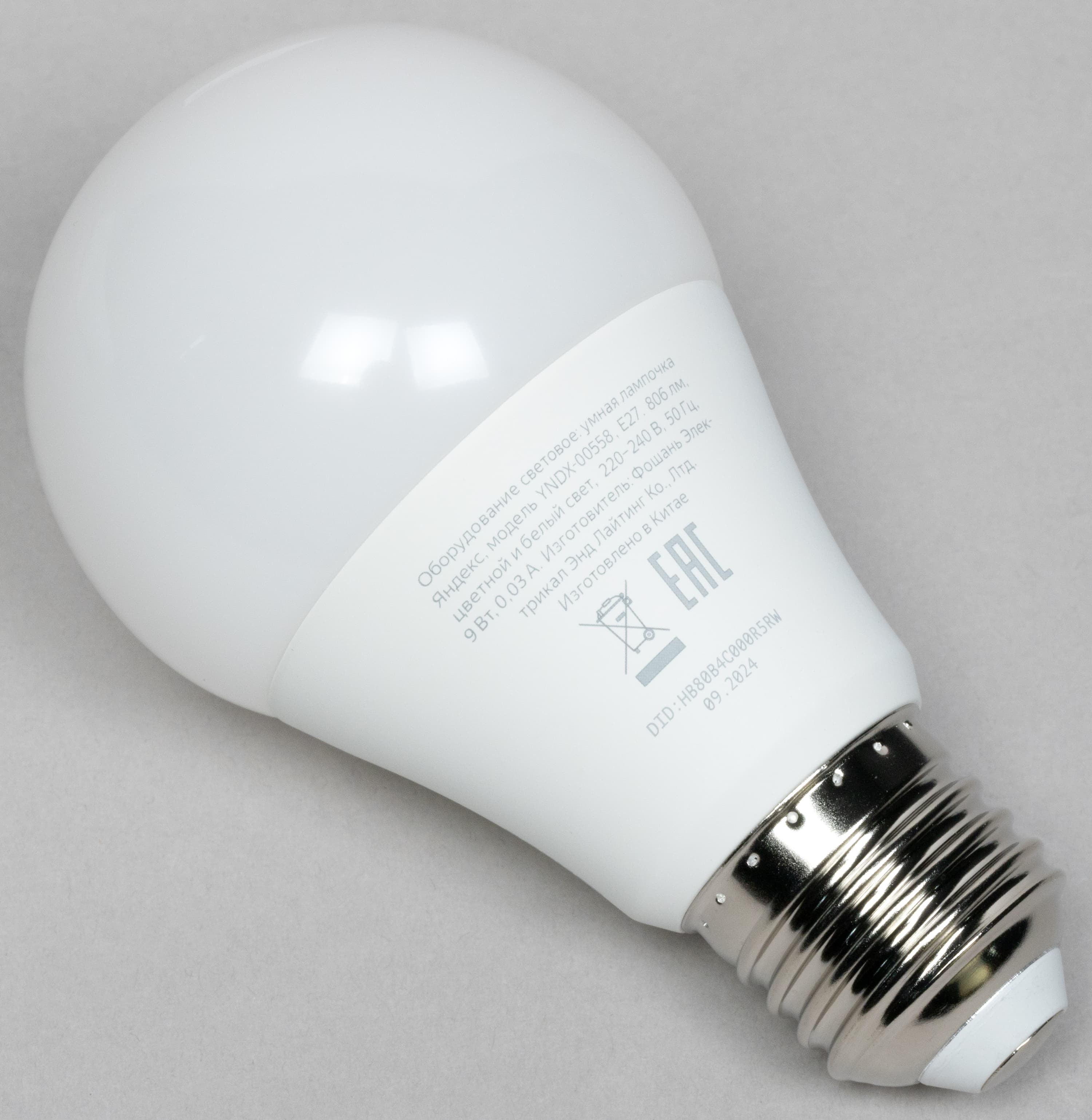 Модификация, не поддерживающая смену цветов. В остальном практически не отличается от «коллег», рассмотренных выше. Стоит дешевле RGB-лампы с тем же максимальным световым потоком, но на момент подготовки обзора разница крайне невелика — всего на 200 рублей. Вряд ли стоит ради такой экономии отказываться от потенциально полезной возможности менять цвет свечения. Но тут каждый ориентируется на свои цели и задачи, конечно.