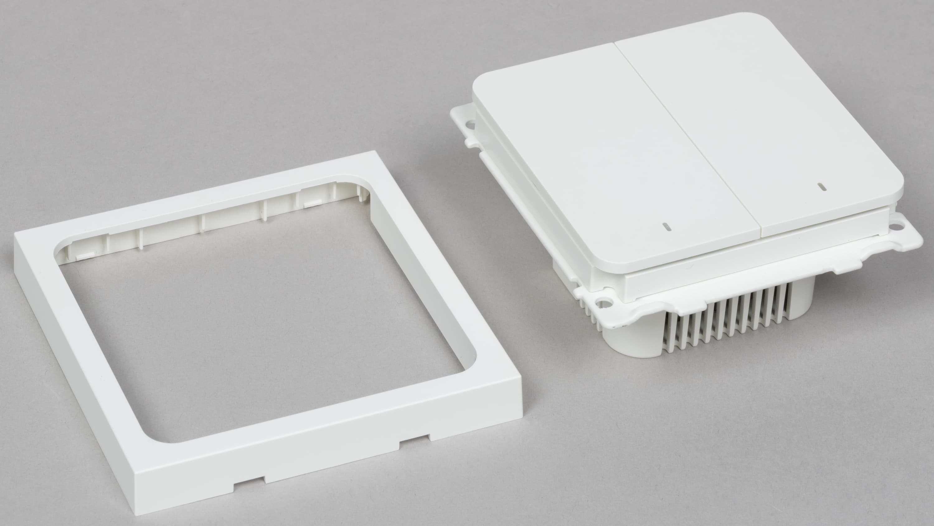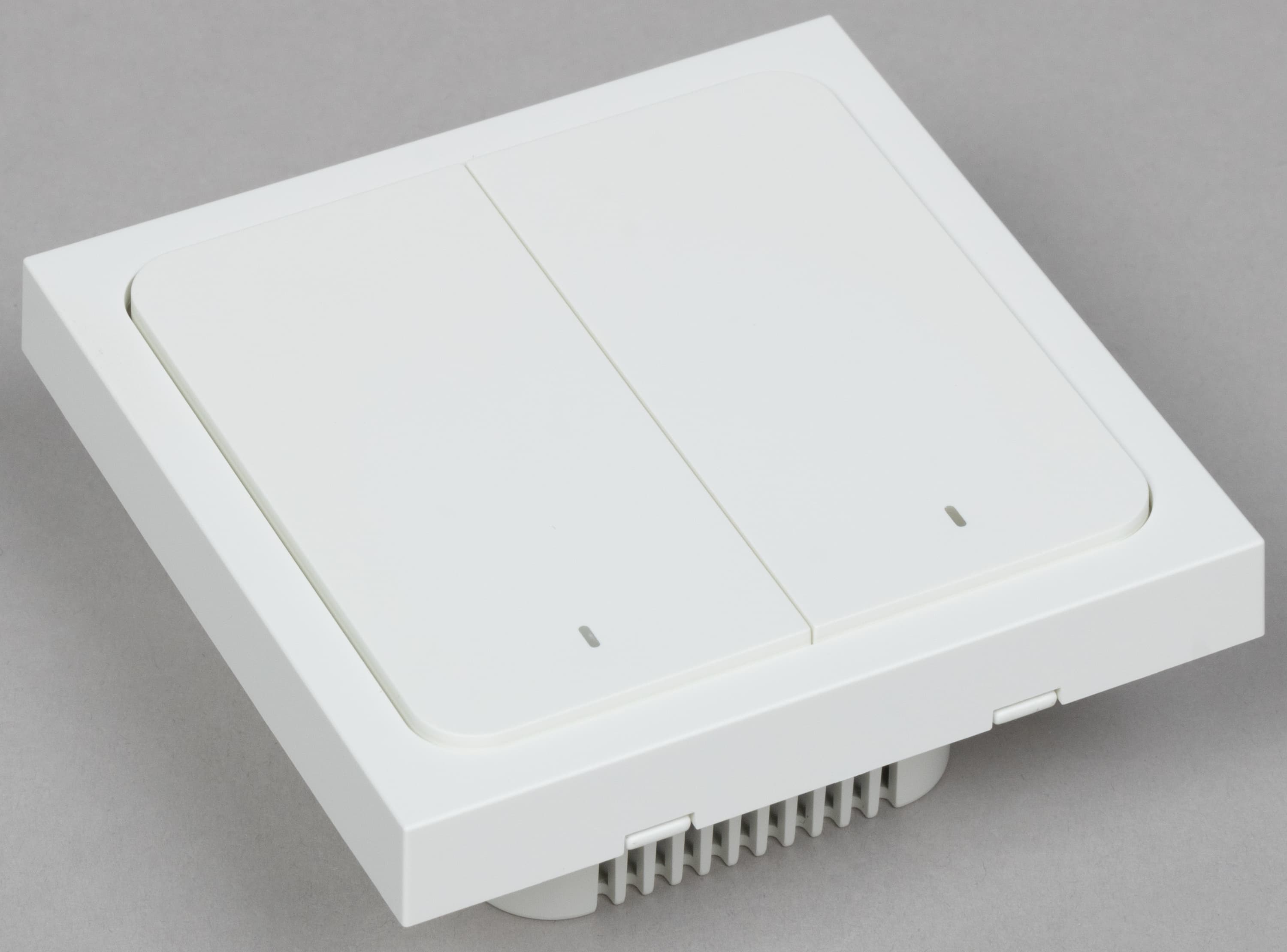 Размеры корпусов чуть разные: 42×42×21 мм у одноканального против 46×42×21 мм у двухканального. При монтаже позади выключателя даже эти несколько миллиметров могут иметь значение.