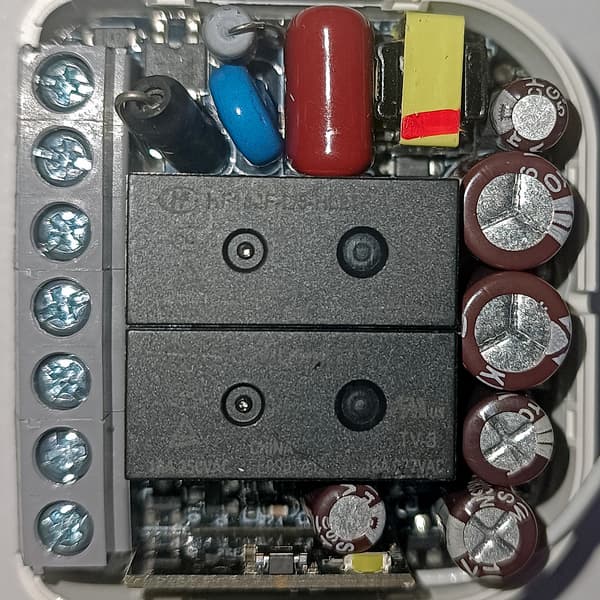 Внутри корпуса мы обнаружили непосредственно реле, плюс отдельную маленькую плату управления со всё той же SoC Telink TLSR8258.