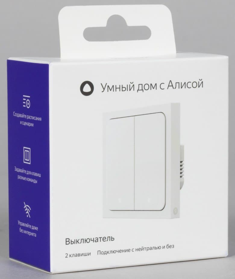 Но это решение обладает целым рядом негативных моментов. Во-первых, пользователь лишается возможности обесточить светильник. Во-вторых, необходима замена ламп или светильника полностью, на которую пользователь может быть не готов. Ну и третий условный минус полностью беспроводных решений — необходимость автономного питания от батареек, которые когда-нибудь придется сменить. К счастью, теперь у «Яндекса» есть два выключателя для монтажа в стандартный подрозетник — одноклавишный YNDX-00531 и двухклавишный YNDX-00532.