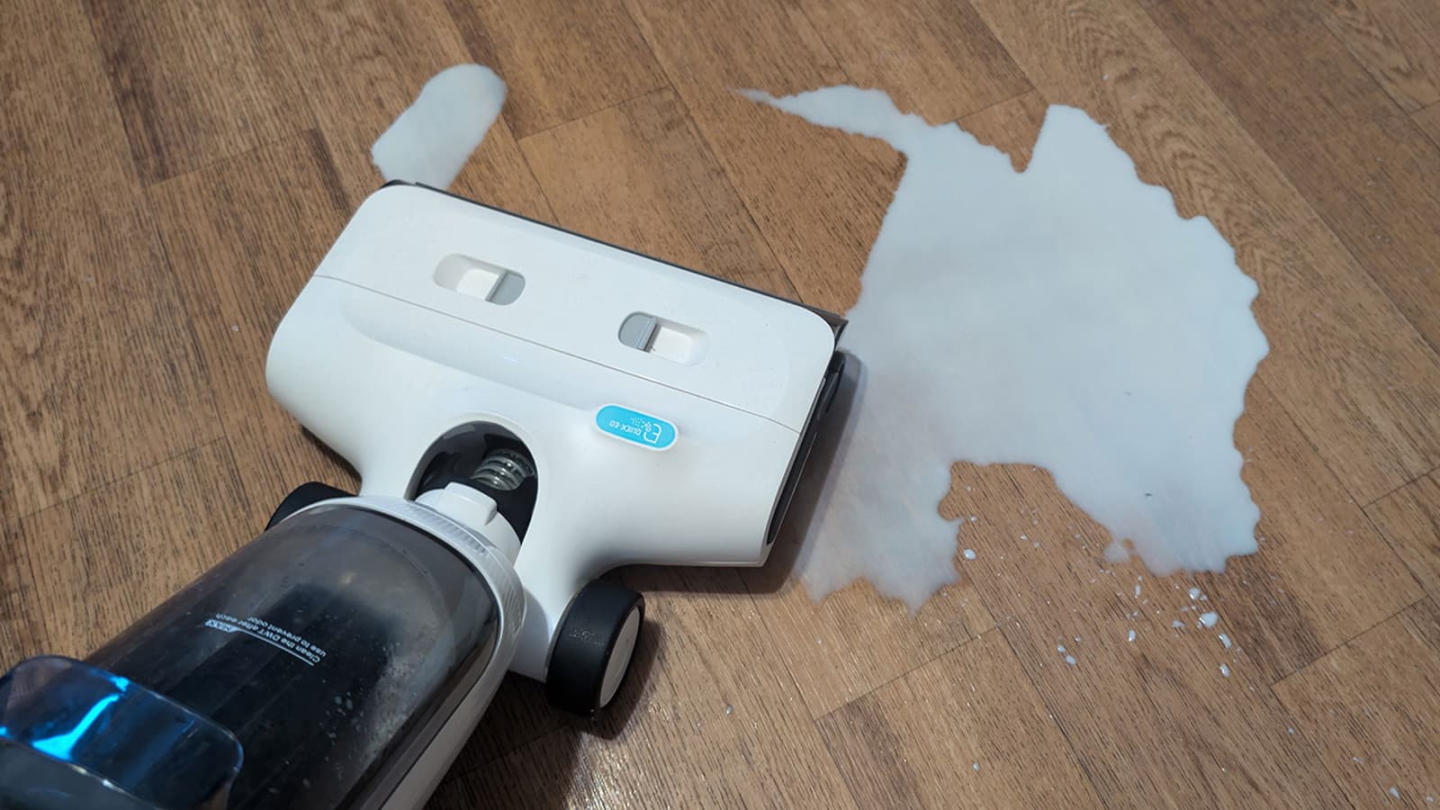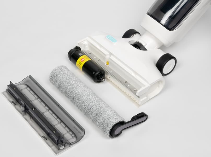 В отличие от большинства моющих аккумуляторных пылесосов, ротор электрощетки у Yoniev U7s занимает почти всю ширину насадки для пола. Такая конструкция позволяет сократить «мертвую зону» по бокам от работающего устройства и эффективно очищать пространство у стен и плинтусов.