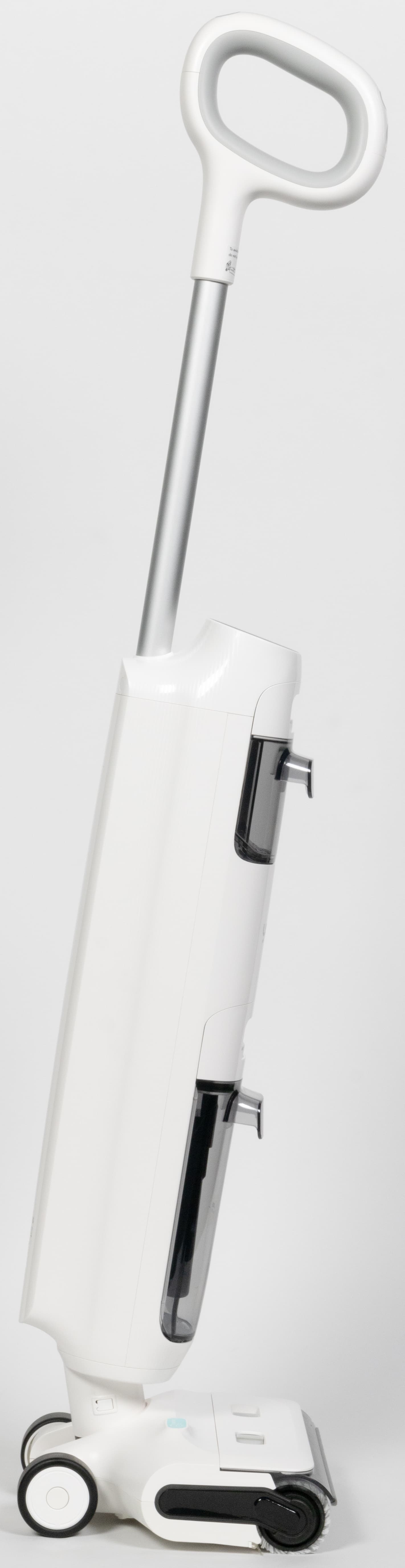 Компоновка у Yoniev U7s близка к традиционной: в сигарообразном корпусе моторного блока размещаются резервуары для чистой и грязной воды, насадка для пола — несъемная.