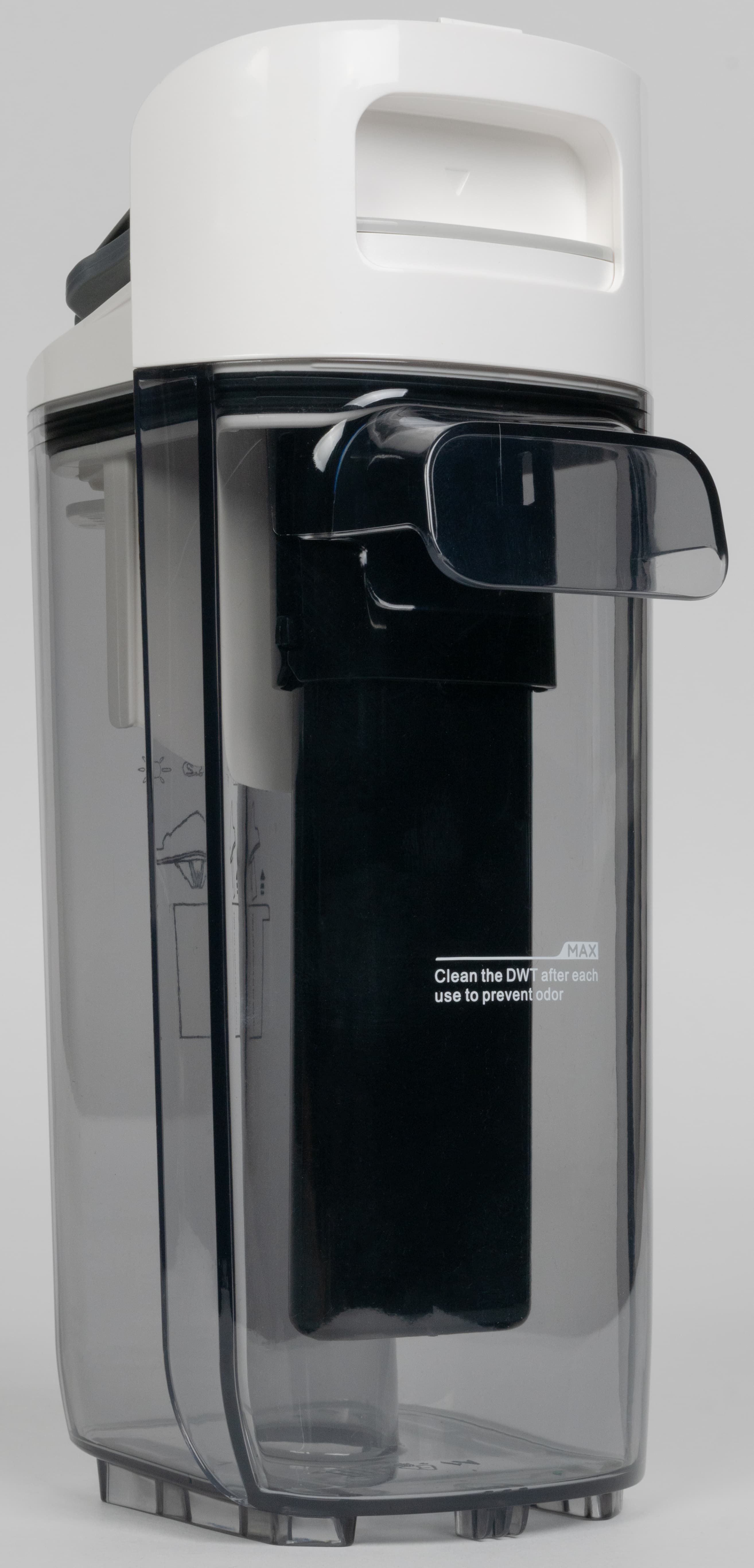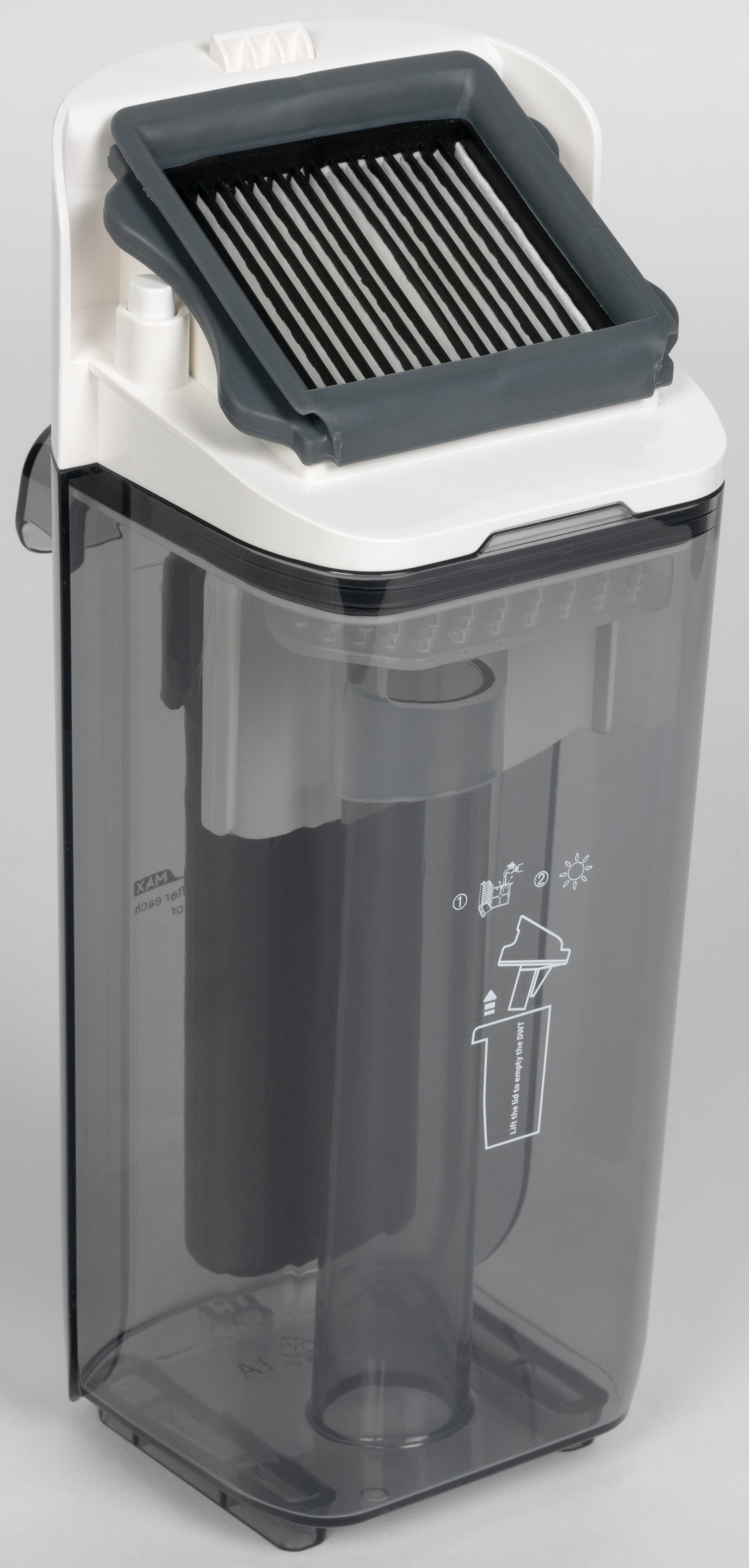 Через стенки съемного резервуара хорошо видна конструкция внутри. Прозрачный серый пластик позволяет также контролировать уровень воды.