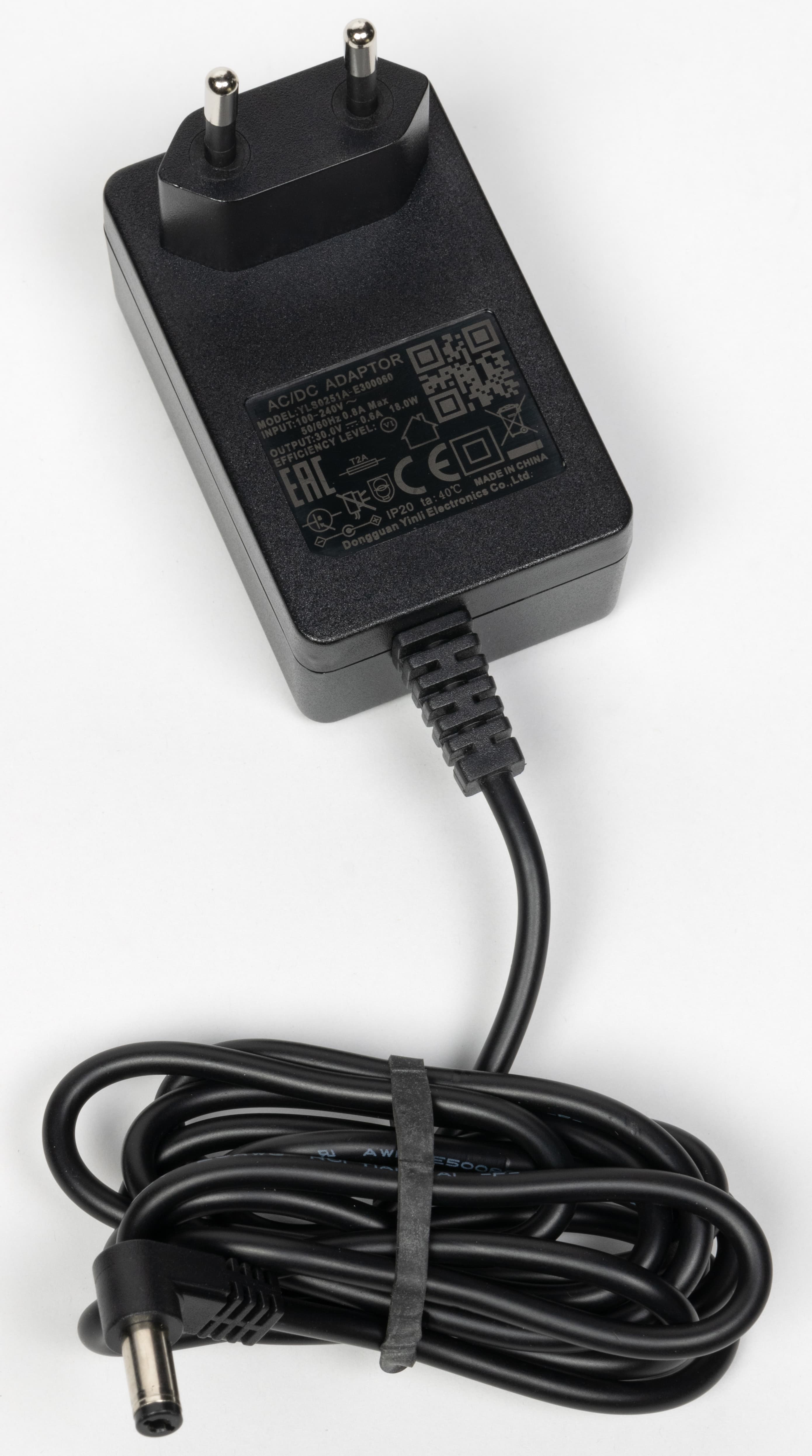 Зарядку устройства обеспечивает адаптер постоянного тока (30 В, 0,6 А) со стандартным круглым разъемом.