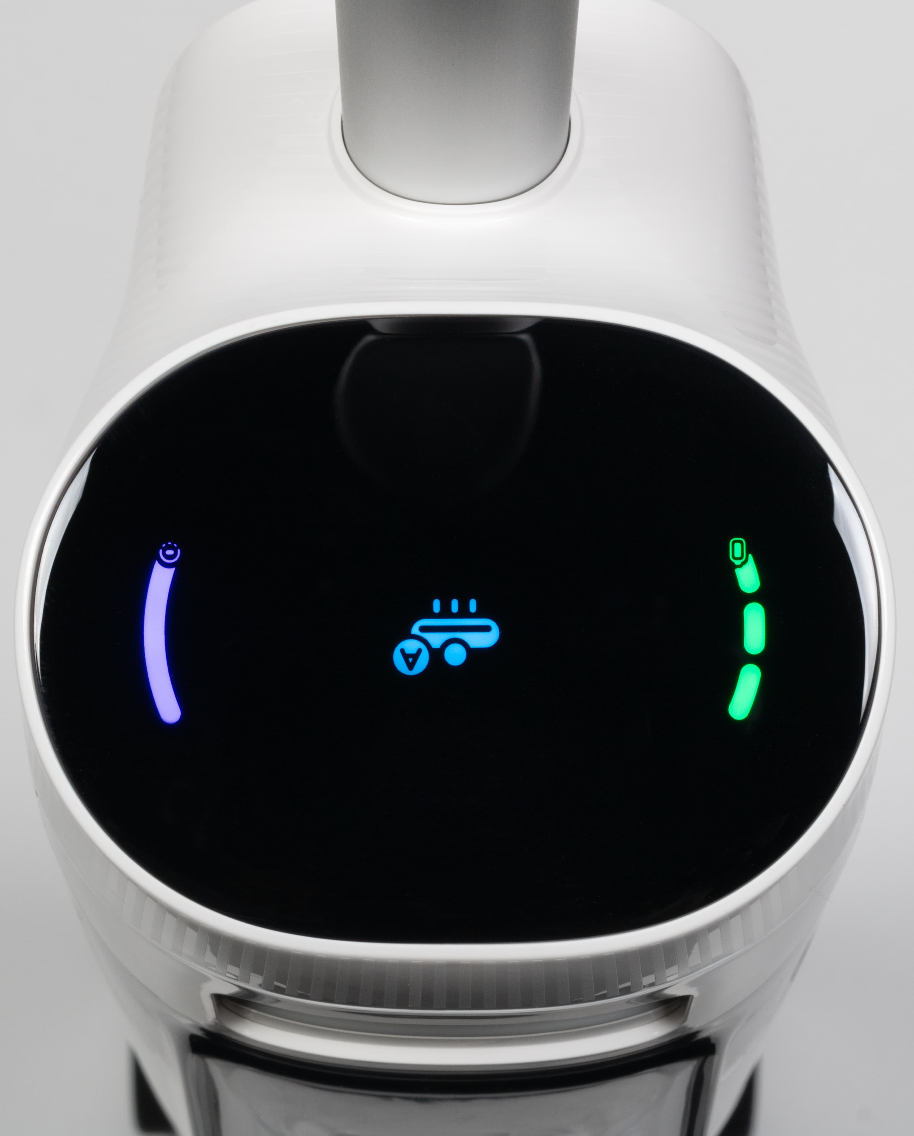 На цветном светодиодном дисплее отображаются уровень заряда аккумулятора, символ выбранной программы и степень загрязнения поверхности. Здесь же предусмотрены значки, зажигающиеся при опустошении резервуара с чистой водой или переполнении емкости с грязной жидкостью.