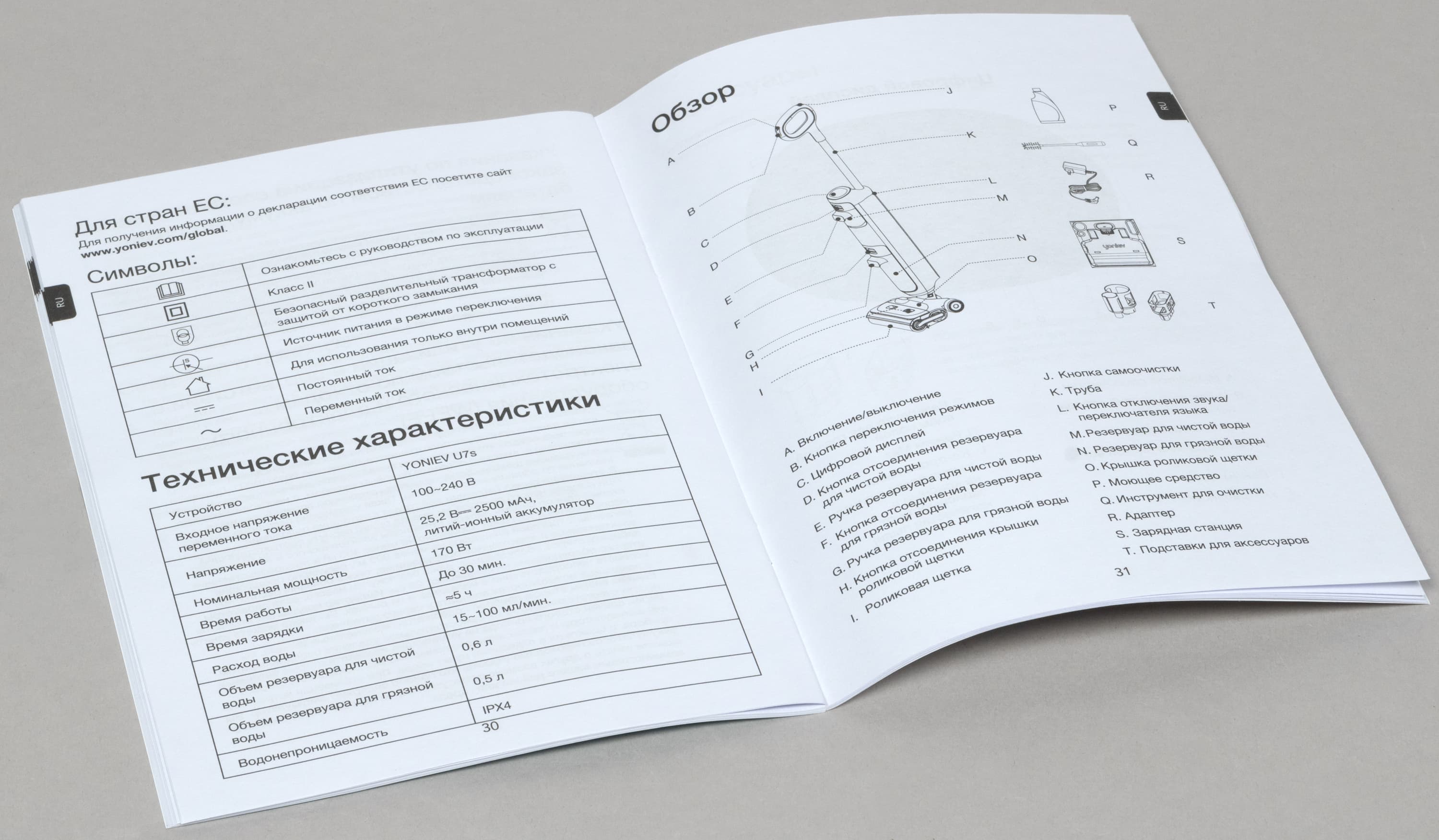 Руководство по эксплуатации пылесоса издано на плотной бумаге в виде брошюры формата А5.