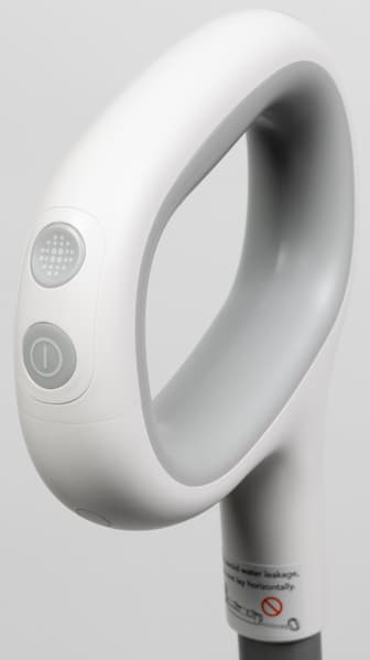 При необходимости очистки не нужно переворачивать громоздкий и тяжелый прибор: достаточно снять крышку насадки, нажав на две клавиши в верхней части.