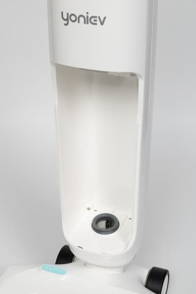 Вес пылесоса с пустыми резервуарами равен 4275 г. Емкость для чистой воды, заполненная «под пробку», вмещает 640 мл. Таким образом, общая масса заправленного и готового к работе устройства составляет 4915 г. Yoniev U7s оказался заметно легче большинства устройств этого класса.