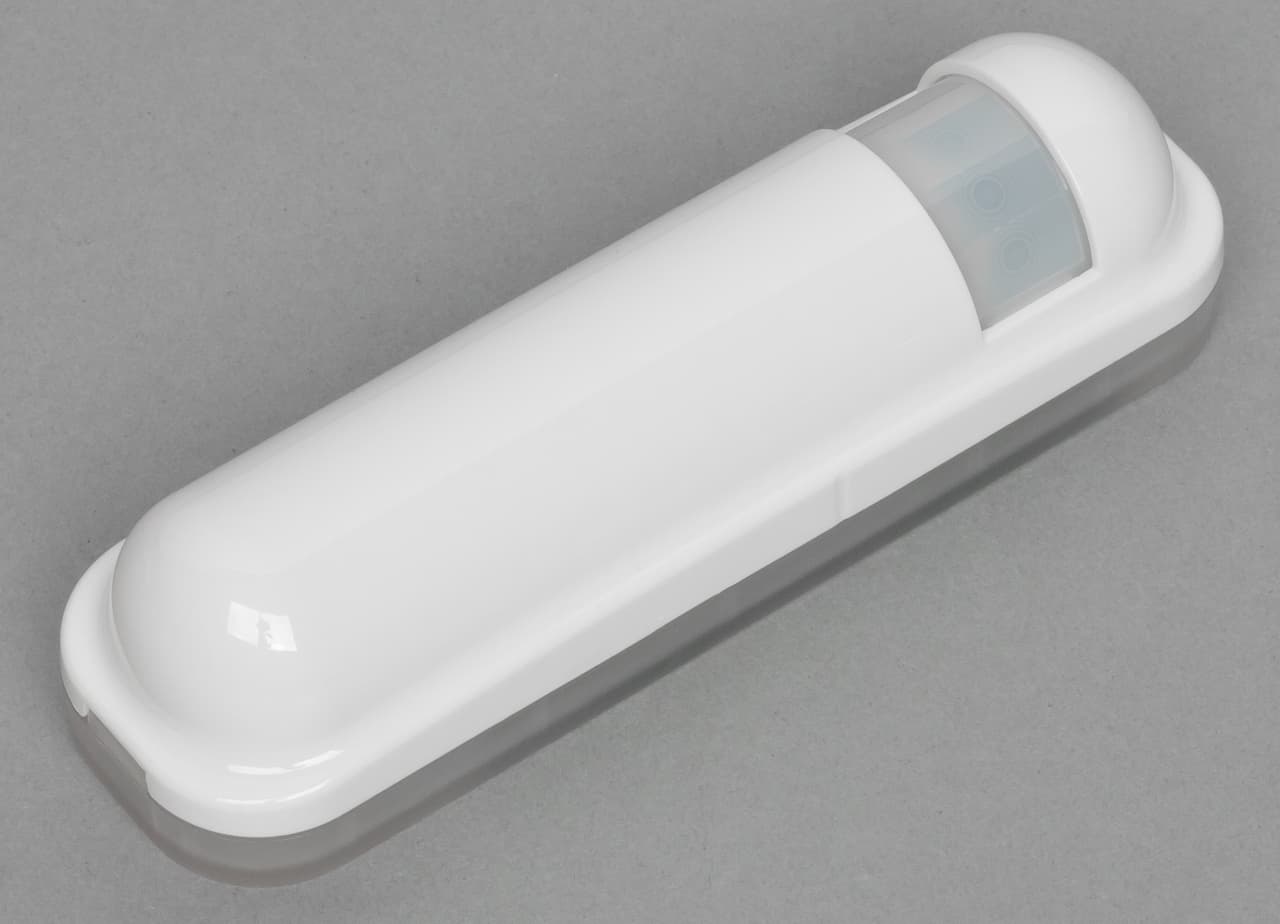 - Зона работы датчика движения: на стене (высота 2,5 м) — сектор 120° на 3,5-5 метров в глубину, на потолке (высота 3 м) — овал 8×6 метров.
