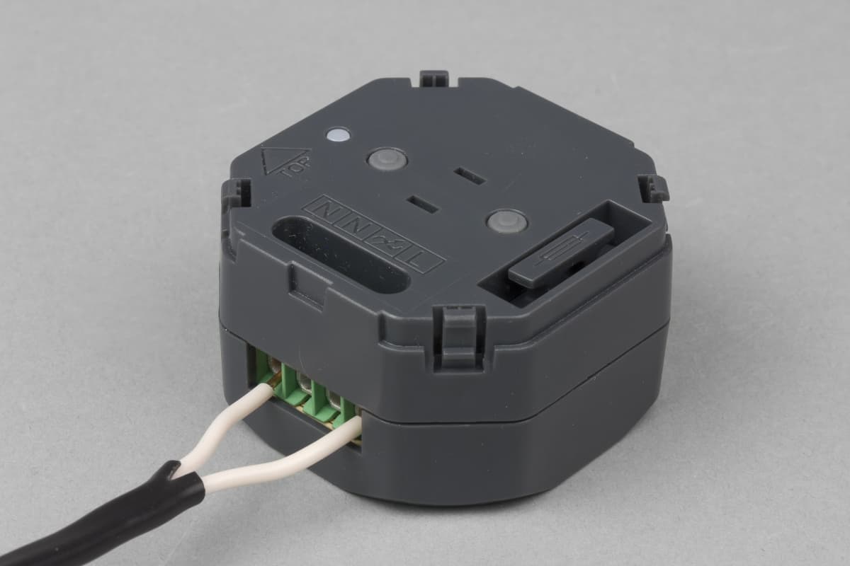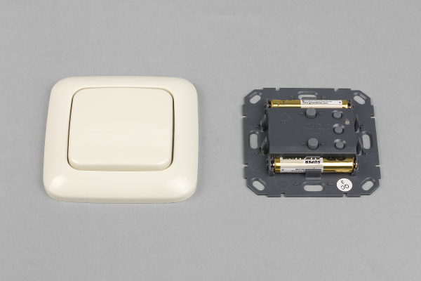 Одно из наиболее простых и в то же время эффектных устройств системы, позволяющее установить выключатель в любом месте квартиры или дома. Его можно буквально просто приклеить на двухсторонний скотч (предусмотрен и вариант с шурупами). Питание осуществляется от двух батареек редкого формата AAAA. Вся электроника скрывается в компактном корпусе внутри стандартной внешней накладки и клавиши. В данный момент появились версии устройства с круглой батарейкой CR2032 и с двумя клавишами.
