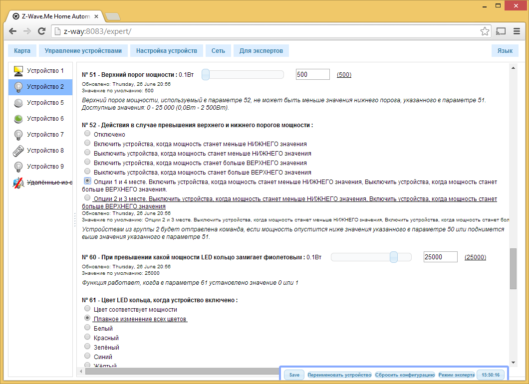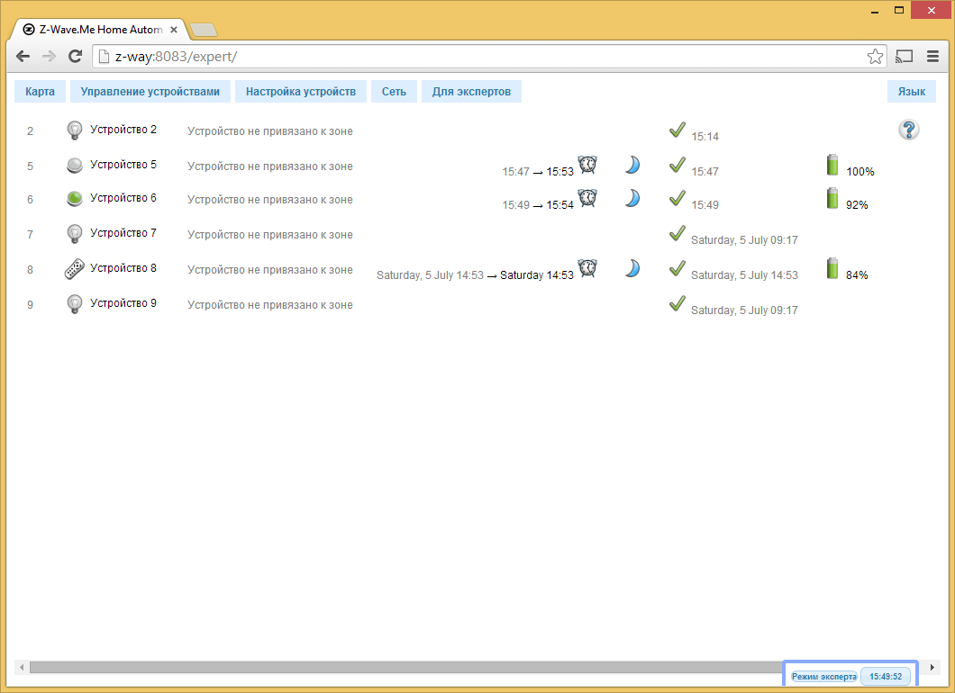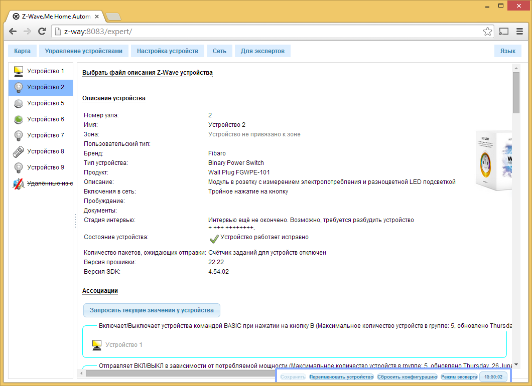 Первый вариант интерфейса называется «Expert UI» и служит для низкоуровневой настройки и контроля работы системы. В частности именно здесь подключаются устройства к сети, настраиваются их параметры и ассоциации, проверяется таблица маршрутизации и осуществляются другие операции. Отметим, что эта версия интерфейса есть и на русском языке. Кроме изменения стандартных параметров устройств есть поддержка и их расширенных возможностей, но для этого конкретные модели должны быть известны системе.