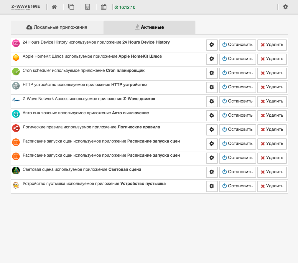 Данный интерфейс будет полезен для настройки, контроля и управления системой, однако все-таки обычно под автоматизацией понимаются не требующие вмешательства человека сценарии. В рассматриваемом продукте эта функция называется «Приложения». При выборе соответствующего пункта в системном меню мы видим список доступных к использованию сценариев и программных модулей.