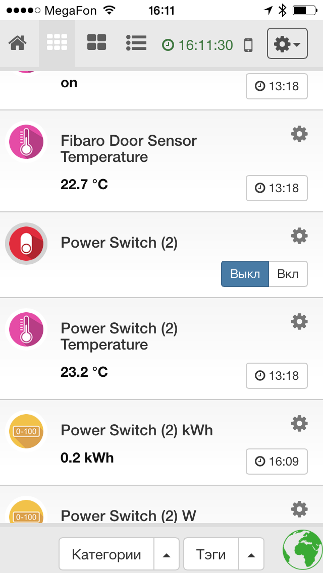 Эту операцию нужно повторить с каждым устройством. Некоторые многофункциональные модели представляются в системе как несколько независимых устройств. Например, описанные выше выключатели Aeotec кроме коммутации нагрузки предоставляют информацию о напряжении питания, потребляемой мощности, токе и общем потреблении в кВт·ч.