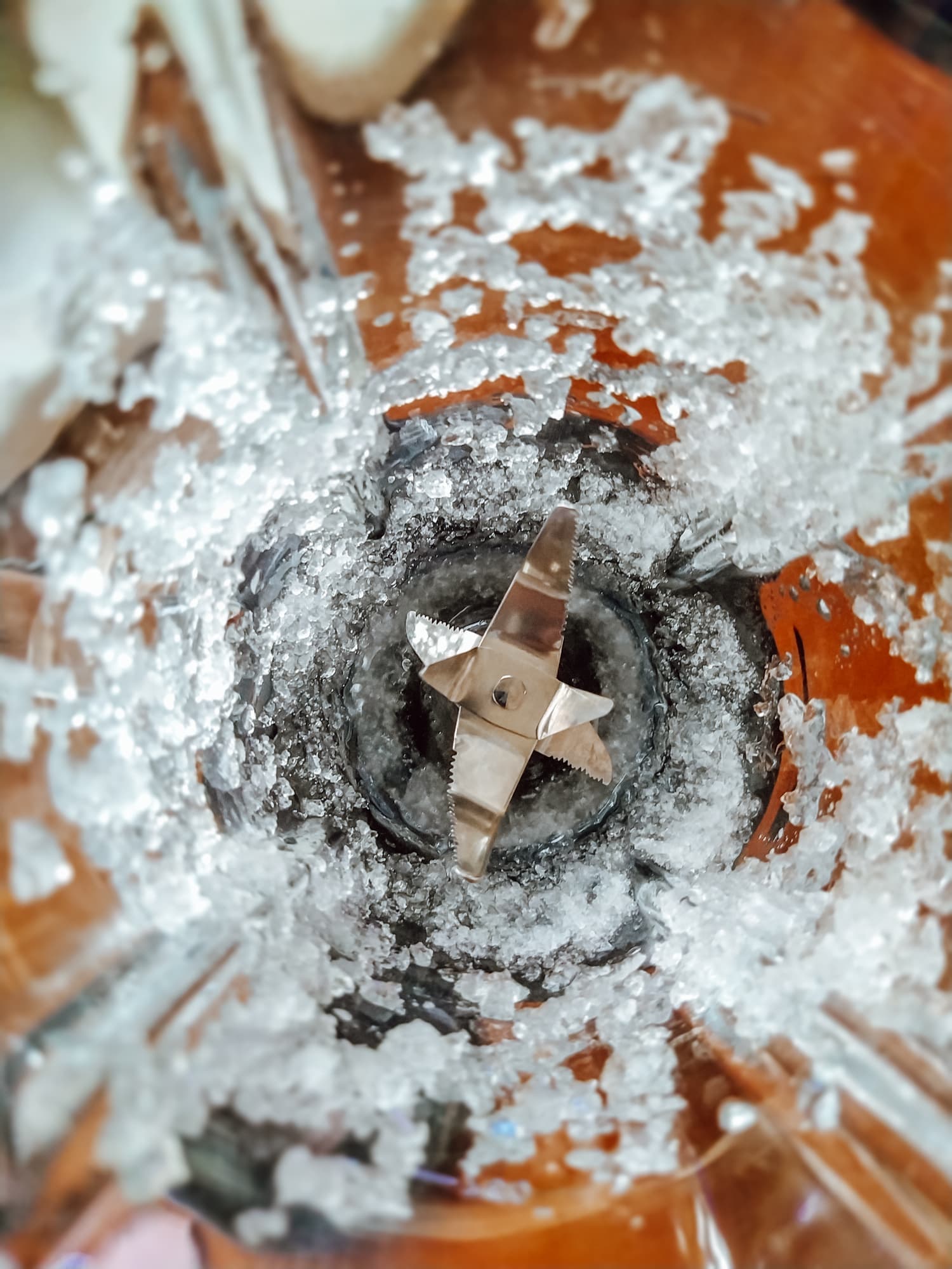 Измельчали лед 10 секунд, плавно увеличивая скорость до максимальной. Получилась однородная ледяная крошка, но внизу, у ножа, скопилась вода. Крошева выходит очень мало, едва хватит на один коктейль.