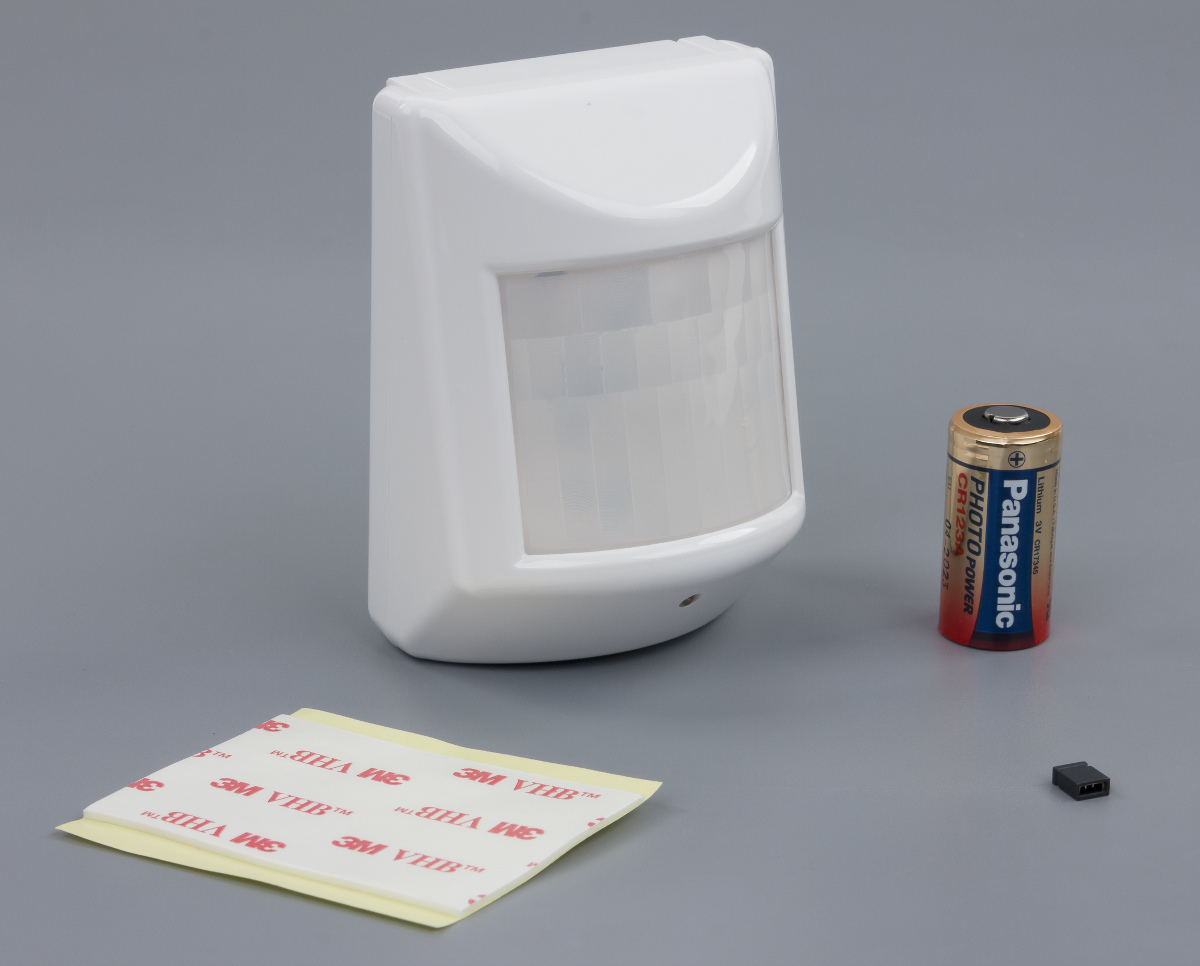 Для питания используется одна батарея формата CR123A. Про возможность использования внешнего питания в документации информации нет. Датчик имеет светодиодный индикатор срабатывания/режима, а также встроенную кнопку вскрытия. Дальность работы при размещении на высоте 2,2 метра составляет до пяти метров (до семи метров с высоты пять метров). Горизонтальный угол зоны покрытия заявлен в 100°, вертикальный — 90°. Устройство рассчитано на использование внутри помещений, диапазон рабочих температур составляет −15…+40 °C, влажность — 5%…95%. Правда, стоит не забывать и про ограничения установленной батареи.