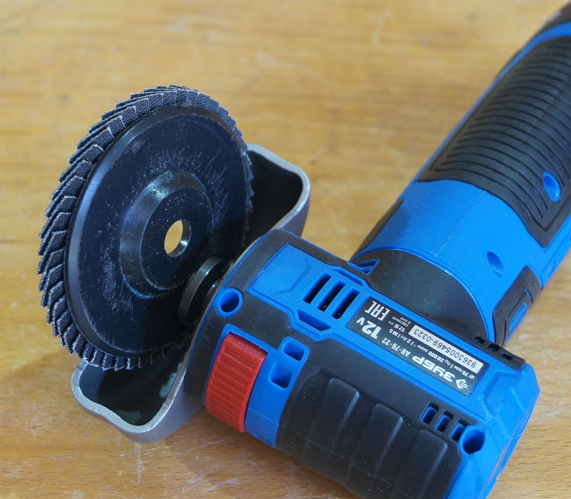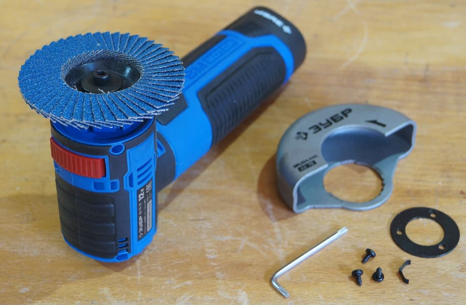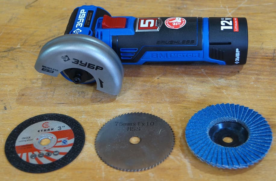 Благодаря наличию у нас еще одной мини-УШМ, в запасе оказались три типа мини-насадок: пильная насадка, насадка для резки дерева, а также лепестковая насадка с пластиковым корпусом.