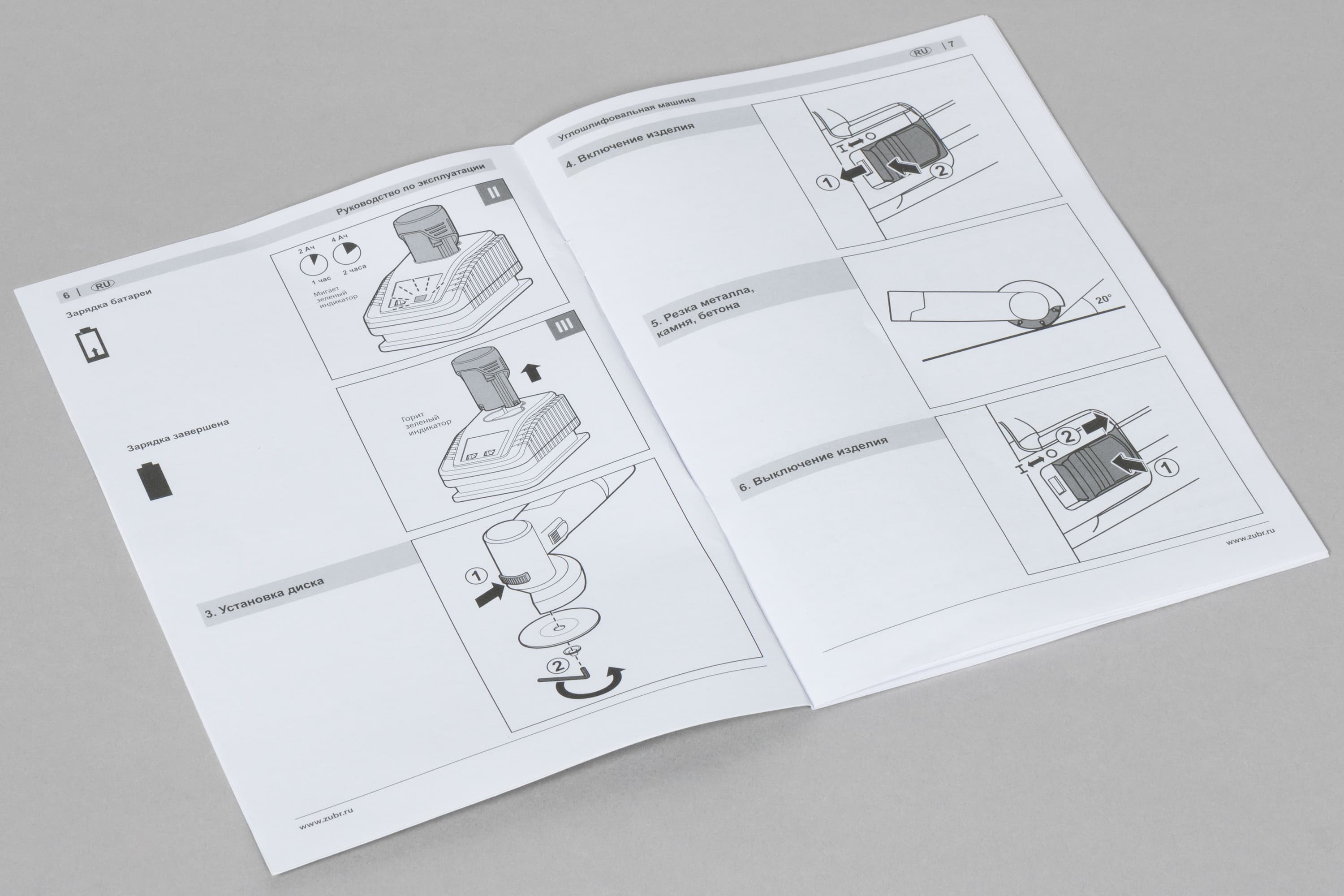 В комплекте к УШМ имеется русскоязычная инструкция с перечислением мер безопасности при работе и методов выполнения тех или иных задач. Имеются схемы и методы способов работы, также даются рекомендации по действиям при неисправностях.