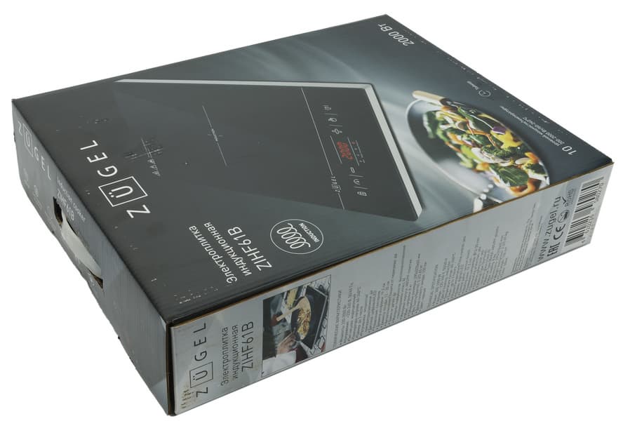 Электрическая одноконфорочная плитка Zugel ZIHF61B выглядит аккуратно и нейтрально. Внешне она повторяет оформление своих старших товарищей — полноформатных плит. Вес прибора небольшой — 2,25 кг, но и совсем невесомой ее не назвать. Однозначно у пользователя не возникнет никаких проблем с транспортировкой плитки на дачу или в другое место, где возникнет необходимость приготовить пищу, и где есть добротные электрические сети.