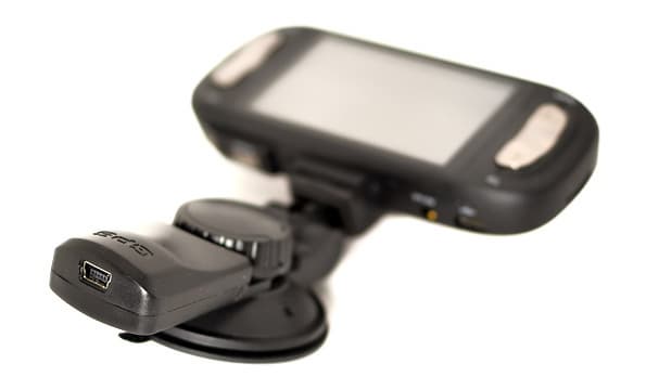 В держатель встроен GPS-модуль, чтобы улучшить приема сигнала, а заодно способствовать уменьшению размеров корпуса регистратора в отсутствие «лишних» комплектующих. Установка производится на вакуумную присоску, для ее «активации» требуется без особых усилий повернуть часть с GPS-приемником на четверть оборота по часовой стрелке.