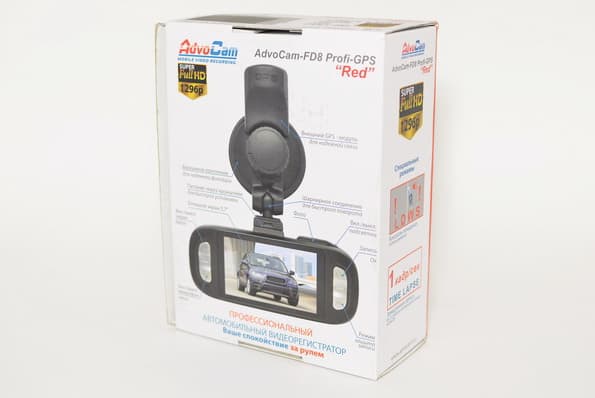 Информация на коробке регистратора AdvoCam-FD8 Profi-GPS RED по сути превращает упаковку в упрощенную версию инструкции. Пользователям разъясняется суть опции LDWS, есть подробное описания назначения кнопок на корпусе, в таблицу сведена зависимость максимальной длительности видео от объема карты памяти. А наглядная схема даже позволяет увидеть, насколько картинка в разрешении Super Full HD 1296p детальнее таковой в Full HD 1080p.