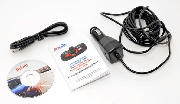 В комплекте – карта памяти объемом 4 Гб, этого достаточно для сохранения до 30 минут видео в Super Full HD или до 40 минут в Full HD. Учитывая, что съемка ведется циклически, а полезная длительность видео вряд ли превысит две-три минуты, такой карточки более чем достаточно. Беспокоиться за случайное стирание не приходится – важные записи в любом случае защитит от непреднамеренного удаления акселерометр. В остальном «ассортимент» привычный для регистраторов – кронштейн, кабель miniUSB, зарядное для прикуривателя и диск с ПО. Интересно, что никаких аудиокабелей не прилагается – видимо, опыт AdvoCam показал низкую степень востребованности этих «шнурков» среди пользователей регистраторов.